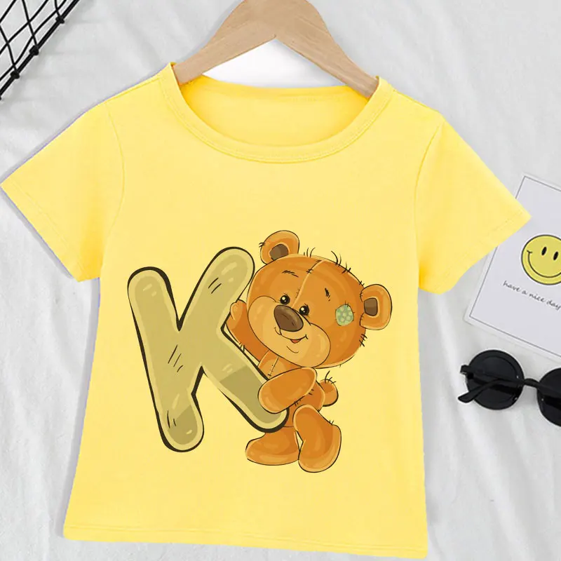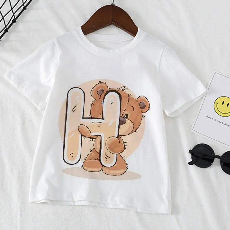 Детская футболка для девочек, летний топ с буквенным принтом для ма...