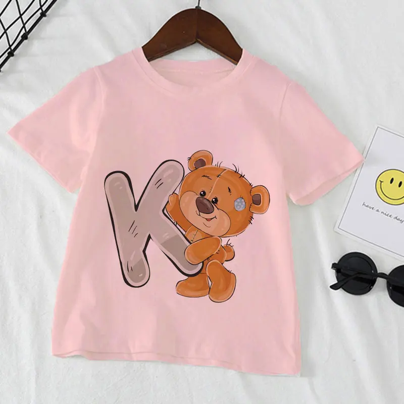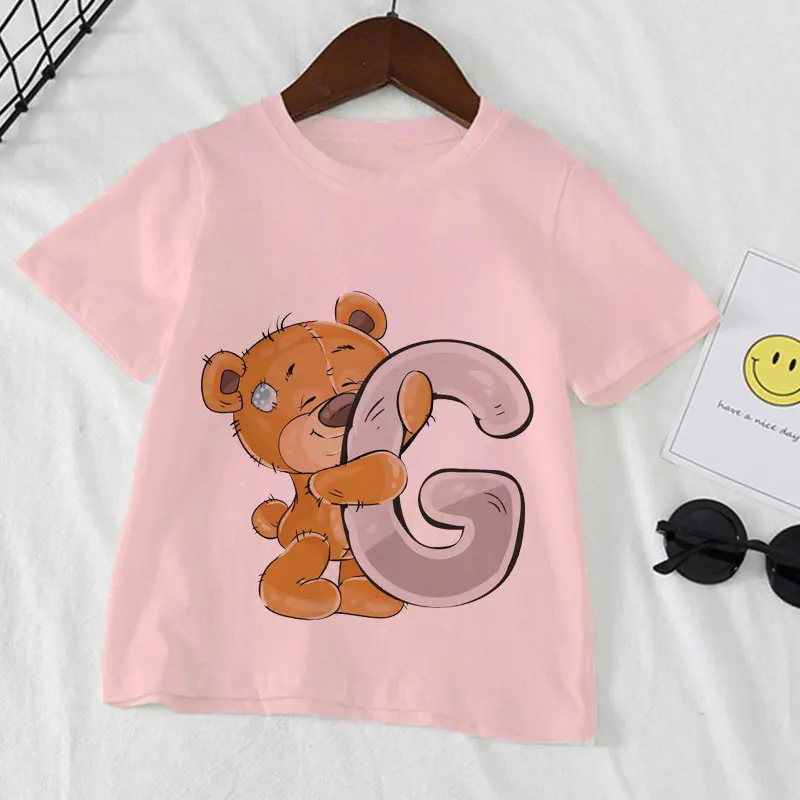 Интересная детская розовая футболка с буквами и цветами, модель 202...