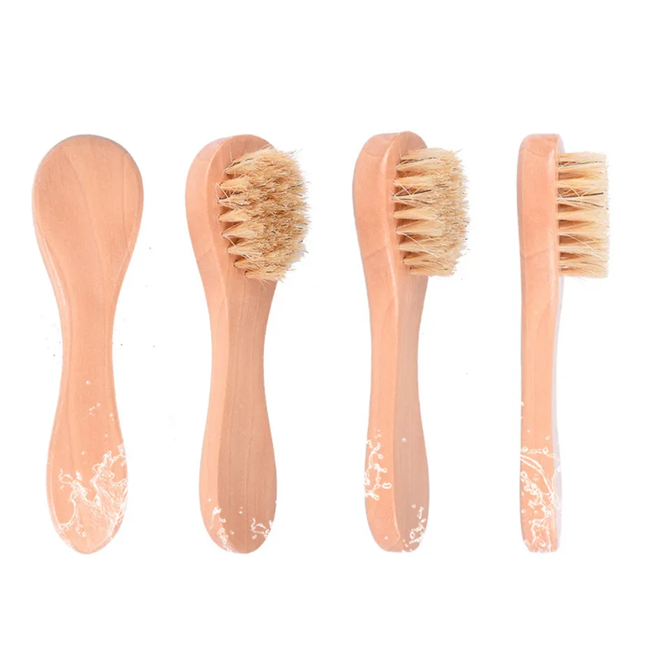 Очищающая щетка для лица, деревянная щетка из глубокое очищение лица шерсти животных, массажный инструмент для ухода за лицом, средство для умывания, кисть для ухода за кожей, 1 шт.