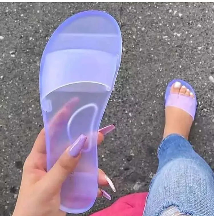 Женские босоножки; Коллекция 2022 года; Пикантная Летняя обувь; Женские слипоны; Модные прозрачные шлепанцы; Женская прозрачная обувь на плоской подошве; Бесплатная доставка