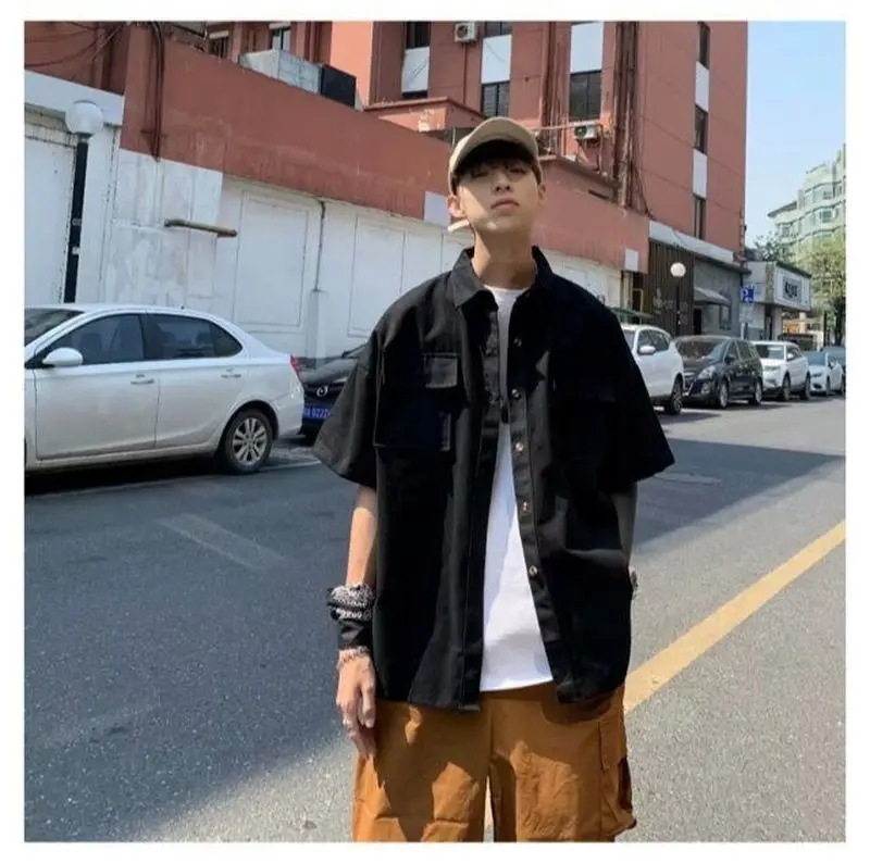 Футболка мужская оверсайз в стиле хип-хоп, темная рубашка с коротки...