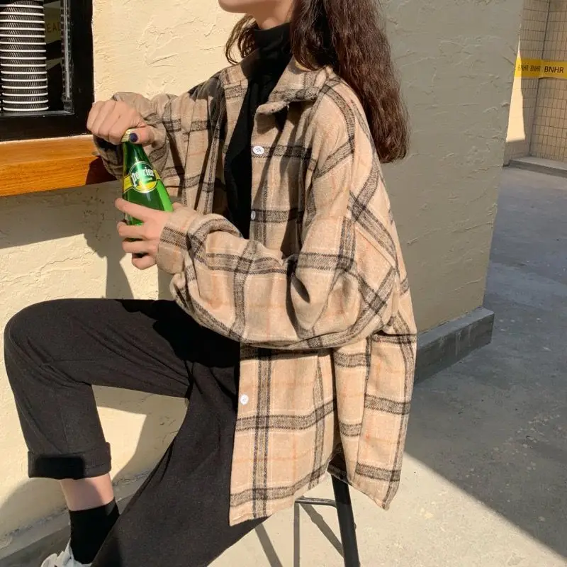 Куртка женская в клетку с длинным рукавом, модное винтажное пальто ...