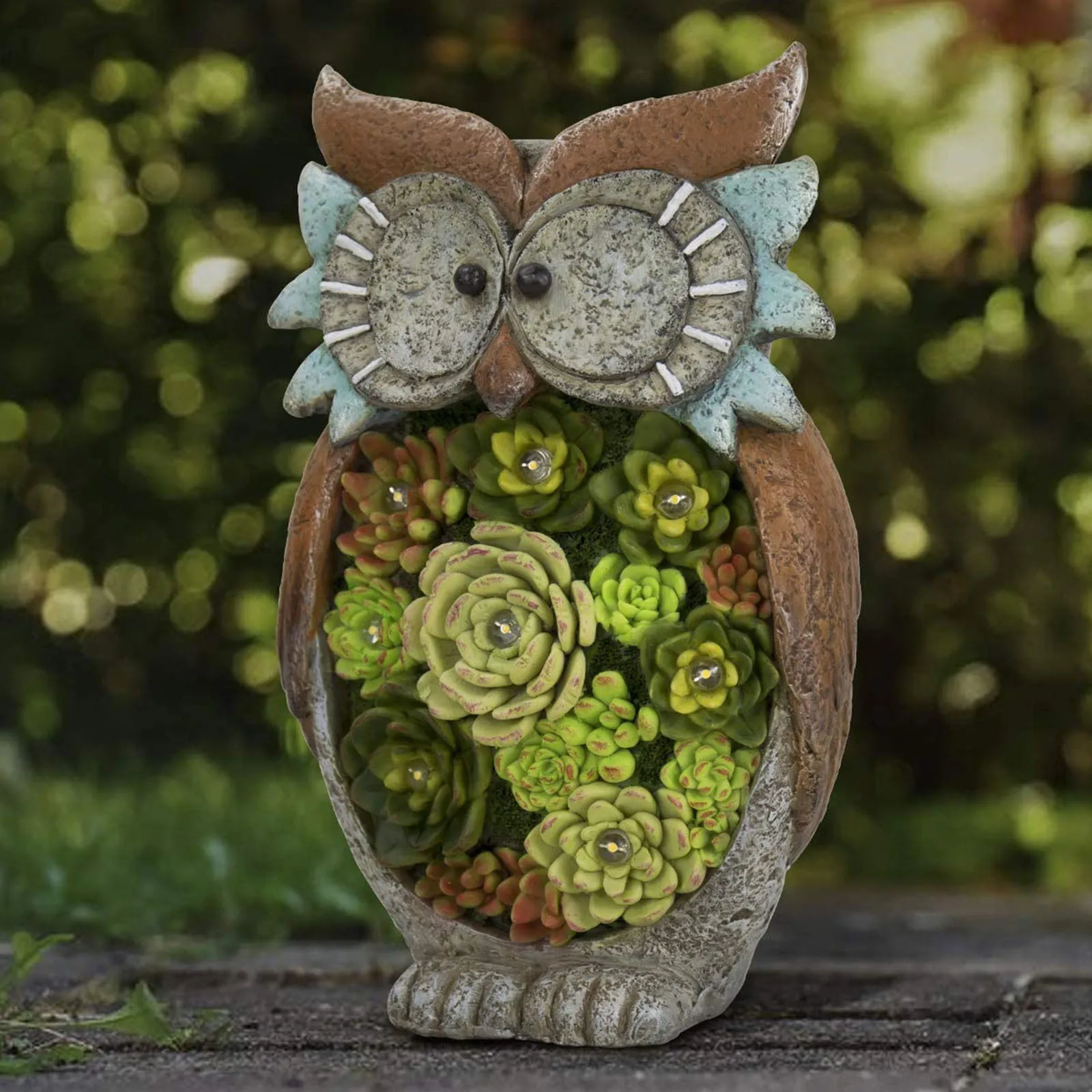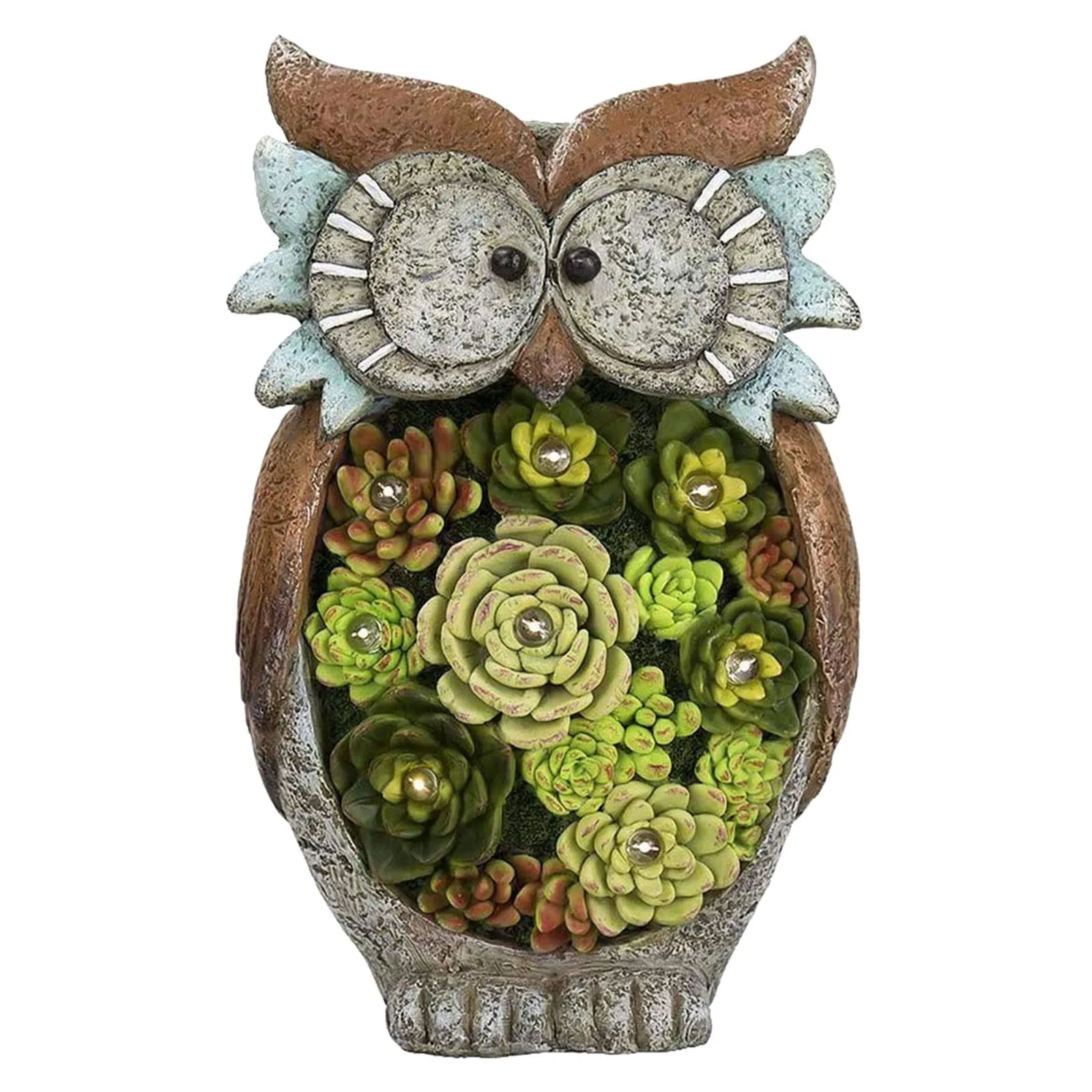 Полимерная сова, светодиодная лампа на солнечной батарее, садовые статуи, уличный декор, суккуленты с фигуркой солнечного фонаря, ландшафтное садовое искусство