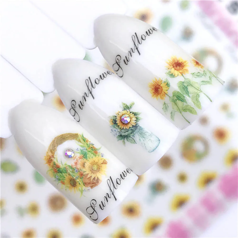 Цветные ананасы, 3D клейкие наклейки для ногтей, цветы, садовые акс...