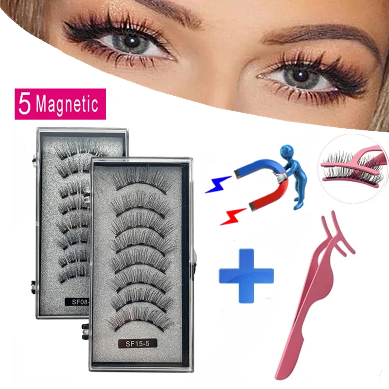 2 пары 8 шт. 5 магнитных ресниц, многоразовые магнитные накладные р...