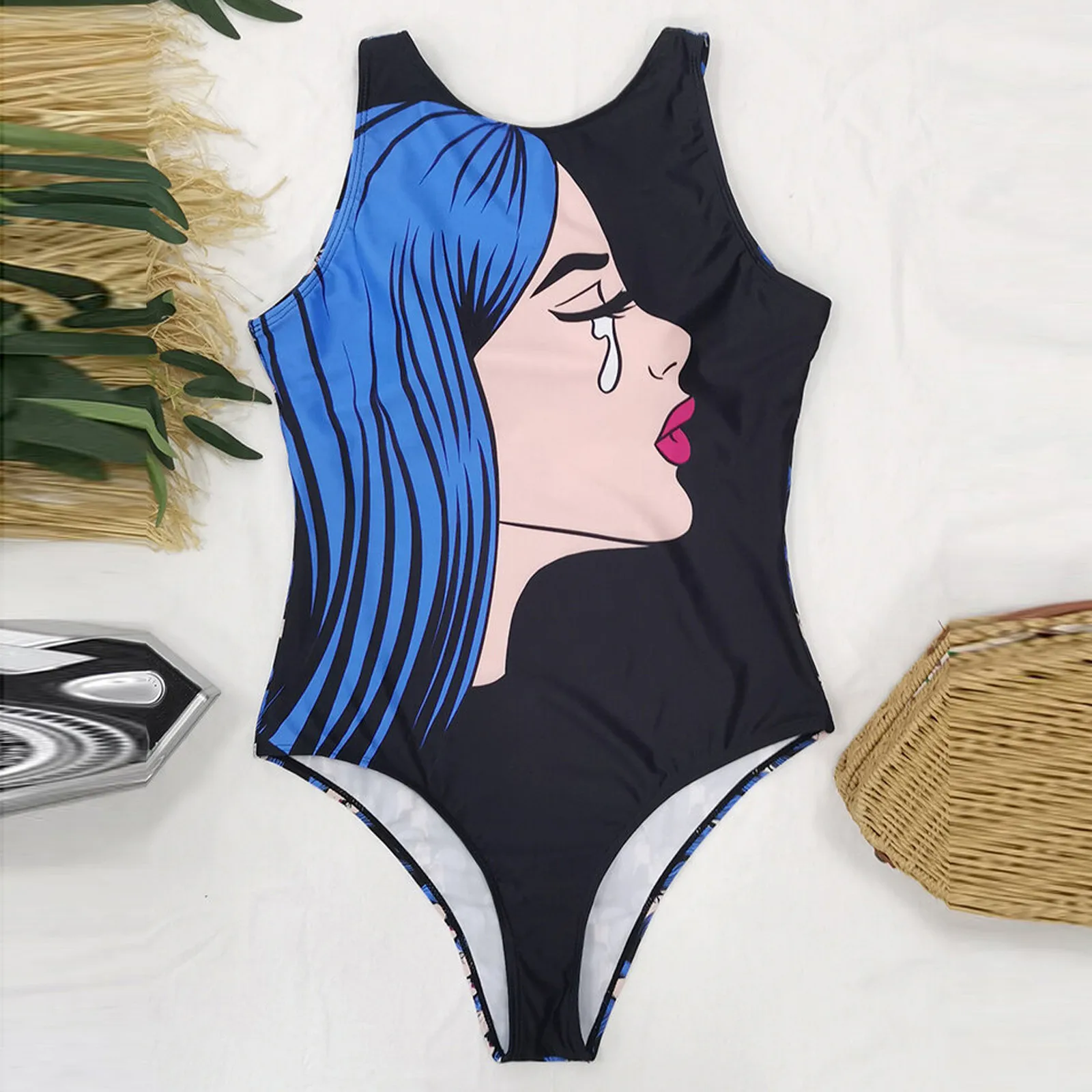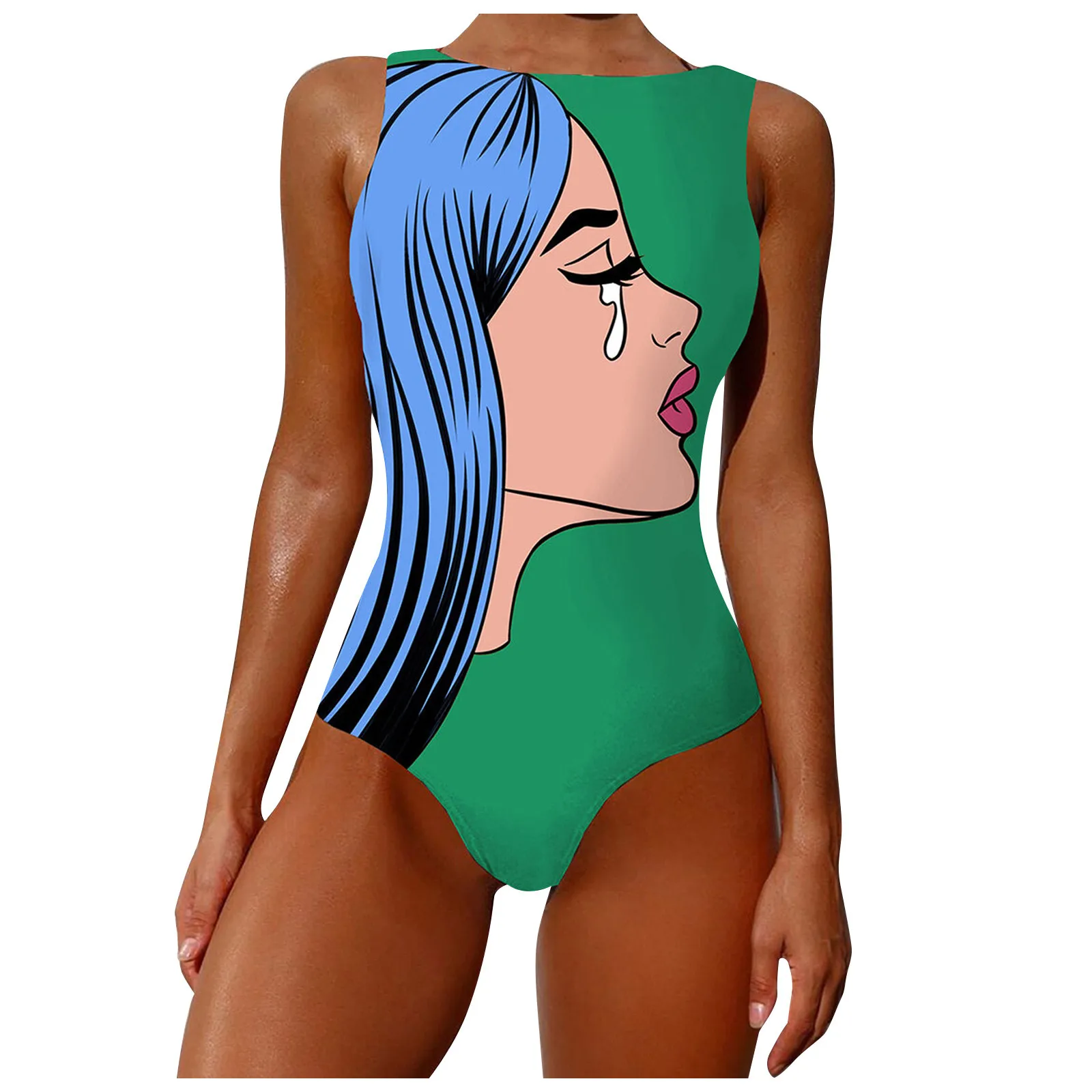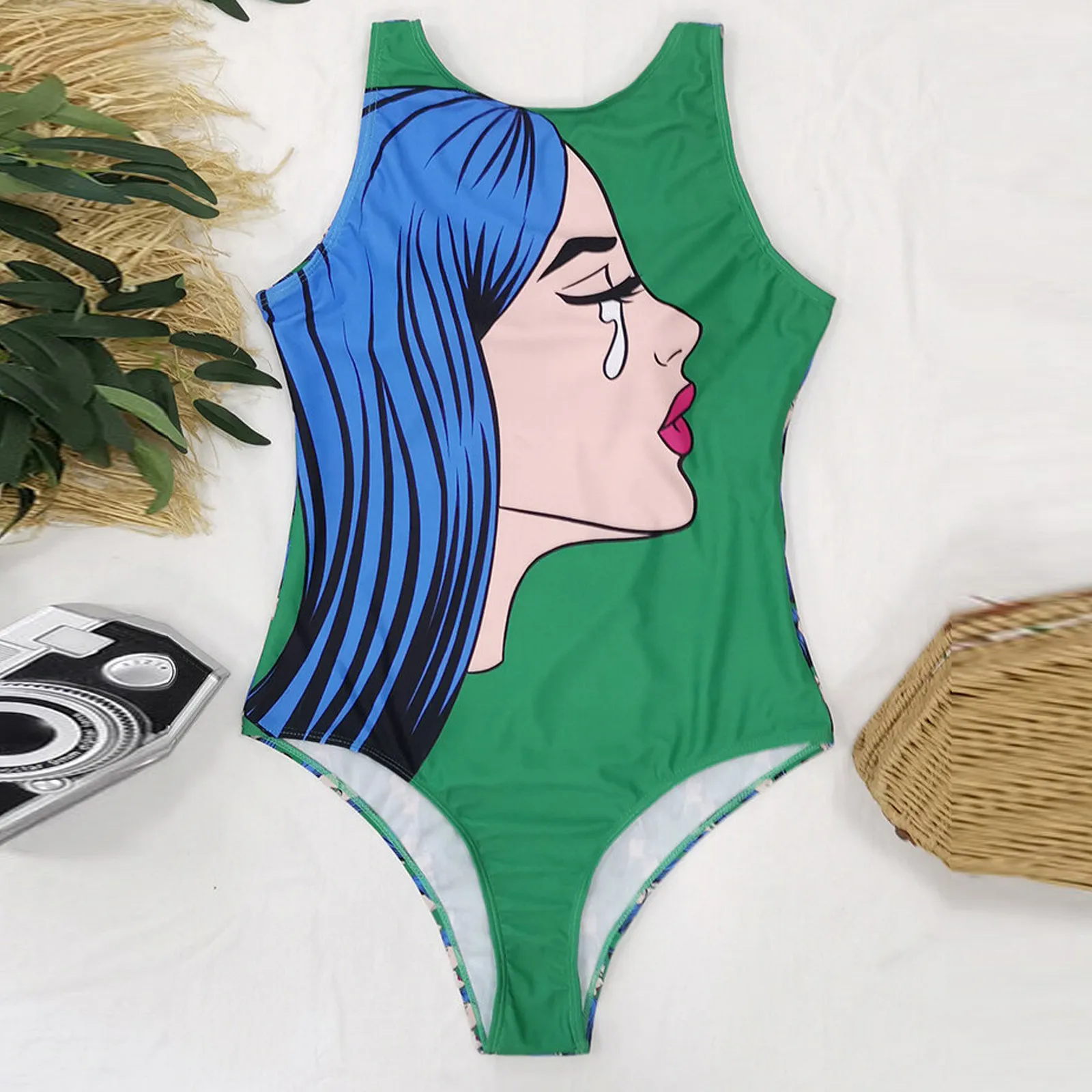 Женская одежда для плавания 2021, сексуальный купальный костюм с граффити, абстрактным принтом, купальный костюм на широких бретелях, бикини, слитный купальник, боди, монокини