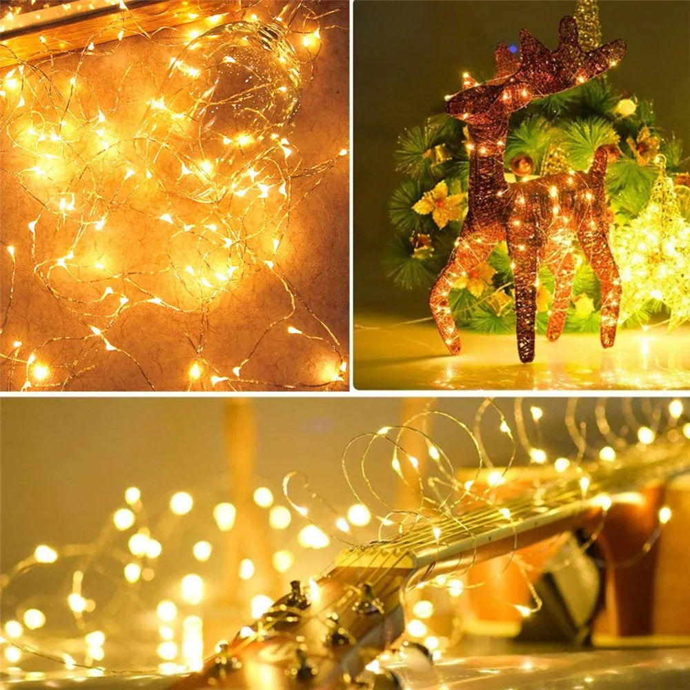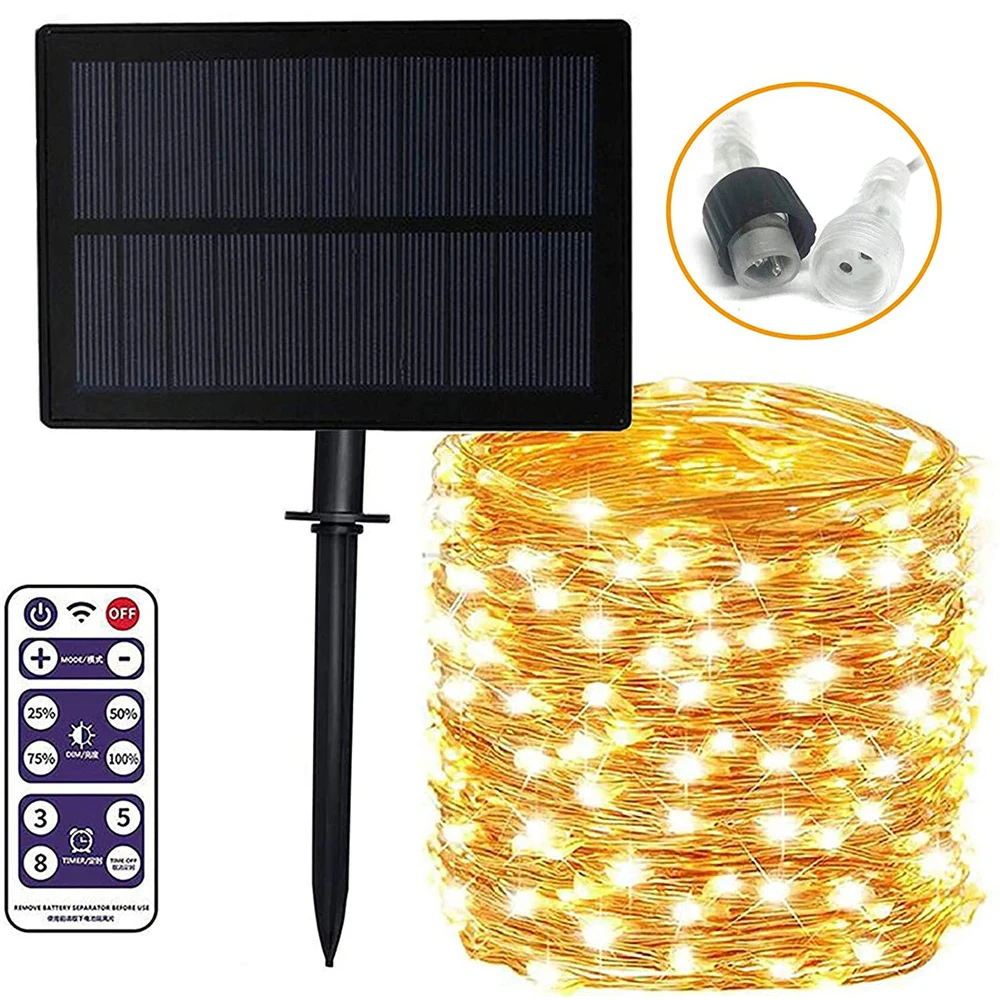 100/50/30/10m солнечные Рождественские строки Дистанционное Управление Фея Медный провод гирлянда Lmap для свадьбы Новый Год Вечерние Патио Декор