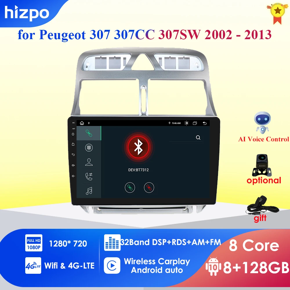 Автомагнитола 2DIN, Android, мультимедийный плеер для Peugeot 307, 307CC, 307SW, 2002-2013, GPS-навигация, Wi-Fi, Bluetooth, 4G, ПК