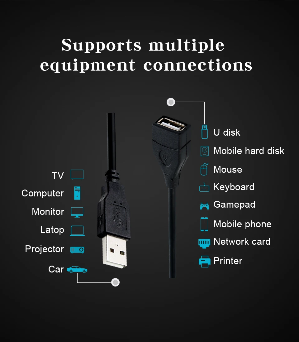 Кабель USB extendsion для решения проблемы пользователей рабочего стола подключите все в рабочем столе Поддержка нескольких устройств, Зарядка телефона может быть расширена для поддержки подключения u-диска, клавиатуры, мыши, картридеров, принтеров, камеры, мобильный жесткий диск для расширения использования компьютеров. С магнитным кольцом магнитное кольцо играет роль анти-электромагнитных помех для уменьшения потери передачи. Характеристика: 1. Никелевая вилка высокой чистоты, уменьшает потерю данных, сигнал об ошибке; 2.USB женский универсальный дизайн, анти-окисление, анти-помехи, многослойное экранирование; 3. Пробка используется 24 часа солевой спрей тест (никель), улучшить продукт анти-солевой спрей коррозионной стойкости, увеличить срок службы продукта; 4. Проводник провода с высококачественной бескислородной медью, Увеличьте Поверхность передачи сигнала продукта, увеличьте срок службы изделия; 5. Поддержка мульти-операционная система, совместимость на уровне систем: Windows8 / 7/10 / Vista / XP / 2008/2003/2000/98/Linux Примечание: 1,5 m/3m/5m с экранированием, 0,5 м/1 м без экранирование с магнитным кольцом, эффективной защиты от помех, масло трансмиссии, становится все более стабильным.