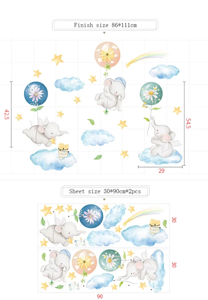 С изображением героя из мультфильма теленок Слон мечта стикер Симпатичные Облако воздушные шары "Звезды" сделай сам "обои для детской спальни детской комнаты Наклейка на стену