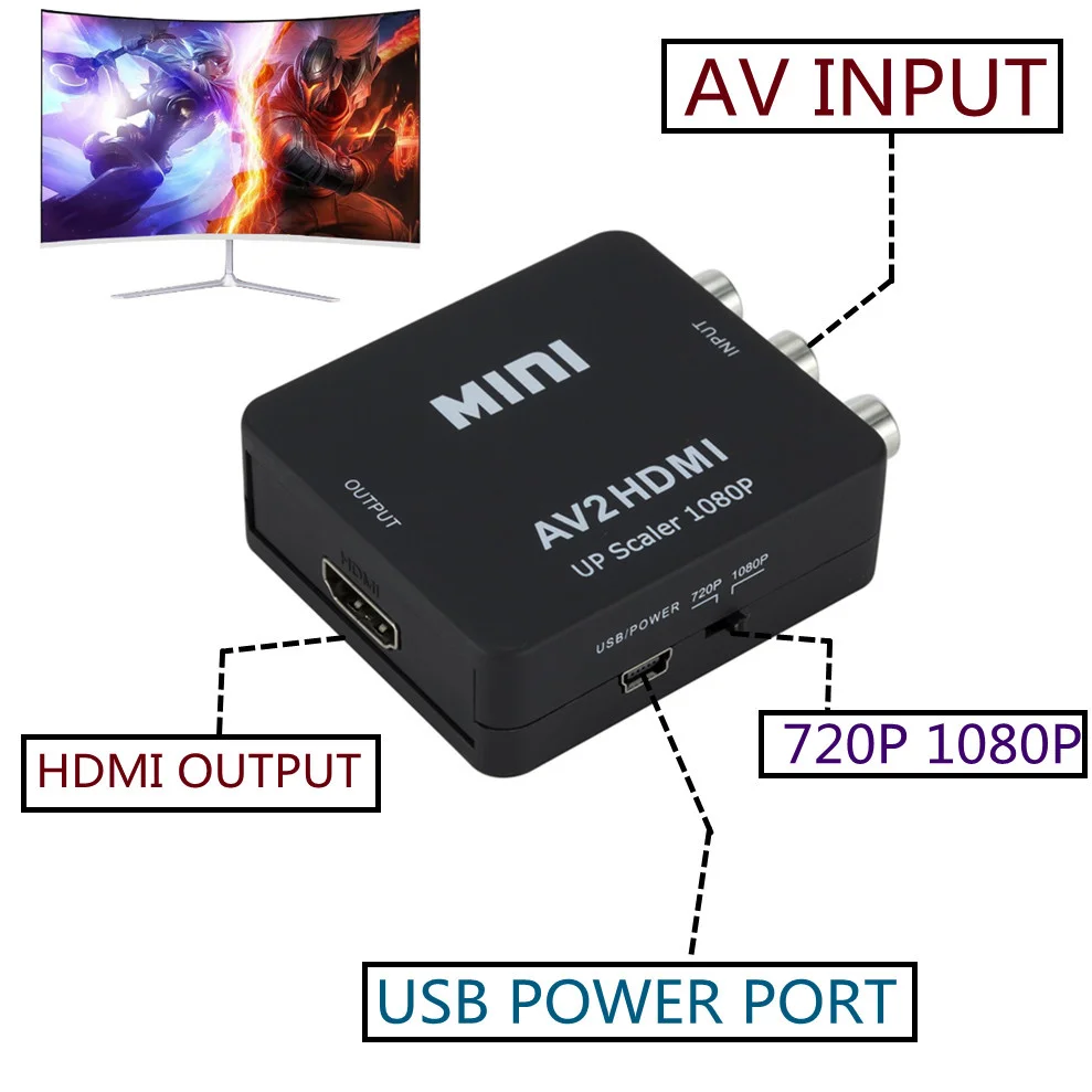 Новый преобразователь Full HD штекер-гнездо RCA AV HDMI-совместимый преобразователь композитный CVBS в HDMI-совместимый AV2HDMI аудиоконвертер