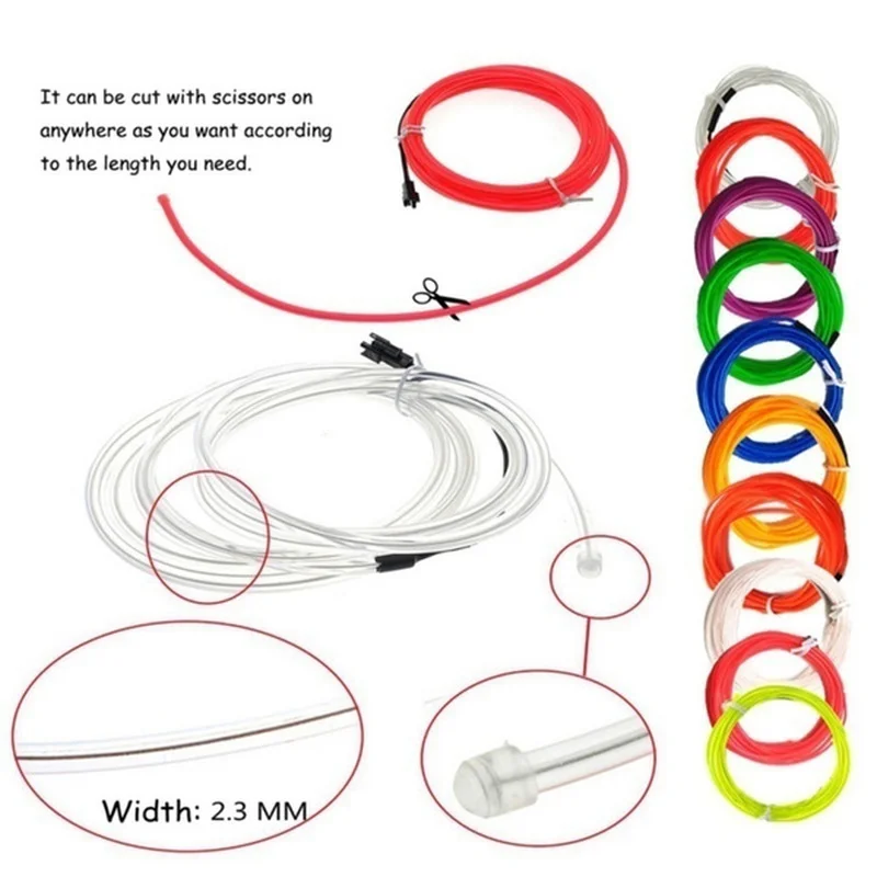 1 м2 м3 м5 м автомобильная светодиодная лента EL Wire, неоновая декоративная лампа для танвечерние, гибкая светодиодная лента EL Wire Tube, водонепроницаемая светодиодная лента