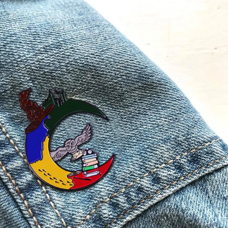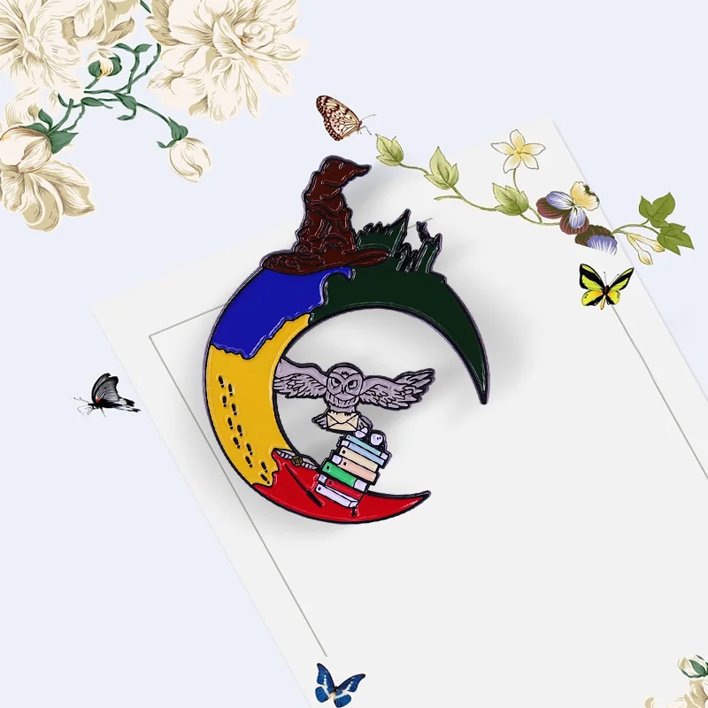 HXXP Летающая сова Луна талисманы заклинание книги подвеска значок в мире фантазия литература книга червь коллекция