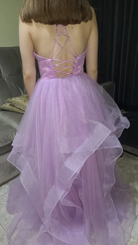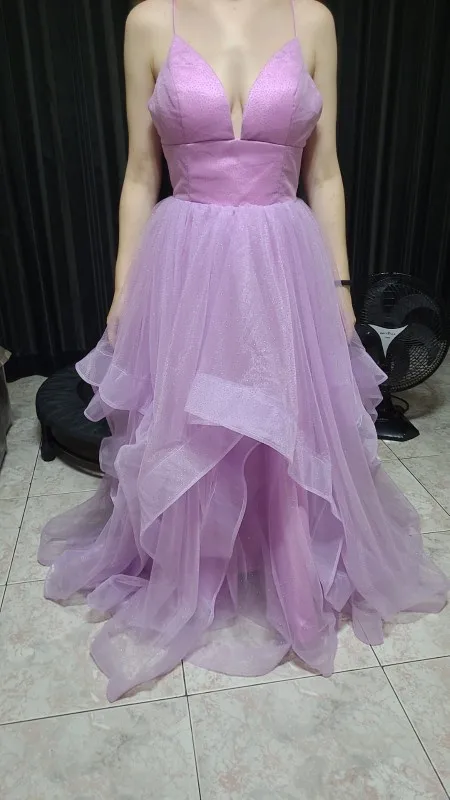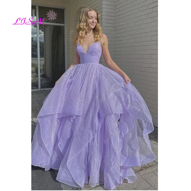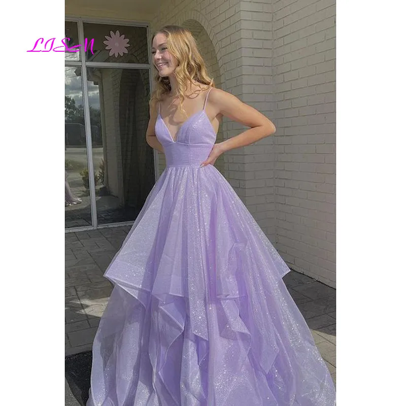 Элегантное фиолетовое Тюлевое длинное платье с V-образным вырезом для выпускного вечера блестящие вечерние платья на бретельках для выпускного вечера официальные платья