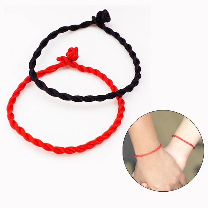 Черный, красный плетеный веревочный браслет на удачу для женщин и мужчин, браслеты с подвесками, ювелирные изделия для влюбленных, лучший подарок, браслеты дружбы