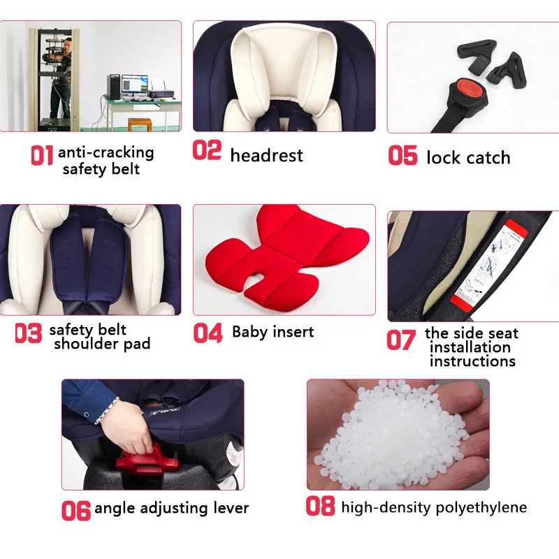 1, 360 градусов безопасности, эргономичный трехмерный дизайн, удобная одежда, хороший опыт, отличное качество изготовления, надежное качество.2. Разные цвета, разные цвета на выбор, удобный дизайн3. В соответствии с различными размерами стульев, расширение ремней для еды, подходит для различных размеров стульев, более адаптируется.4. Ребенок более удобен в носке, внутренняя часть имеет мягкую губку, чтобы уменьшить чувство сдержанности, давая ребенку безопасный и хороший опыт еды.