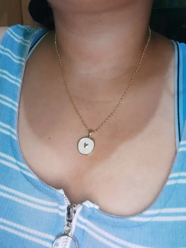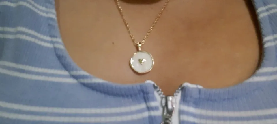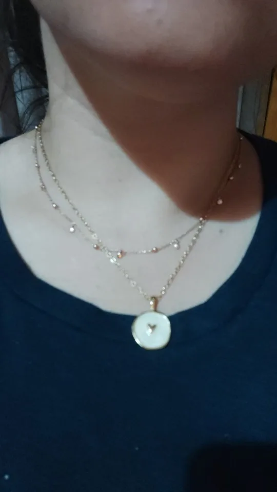 Очень красивое ожерелье. Я купил белый с маленьким золотым сердцем посередине .. Спасибо продавцу :)