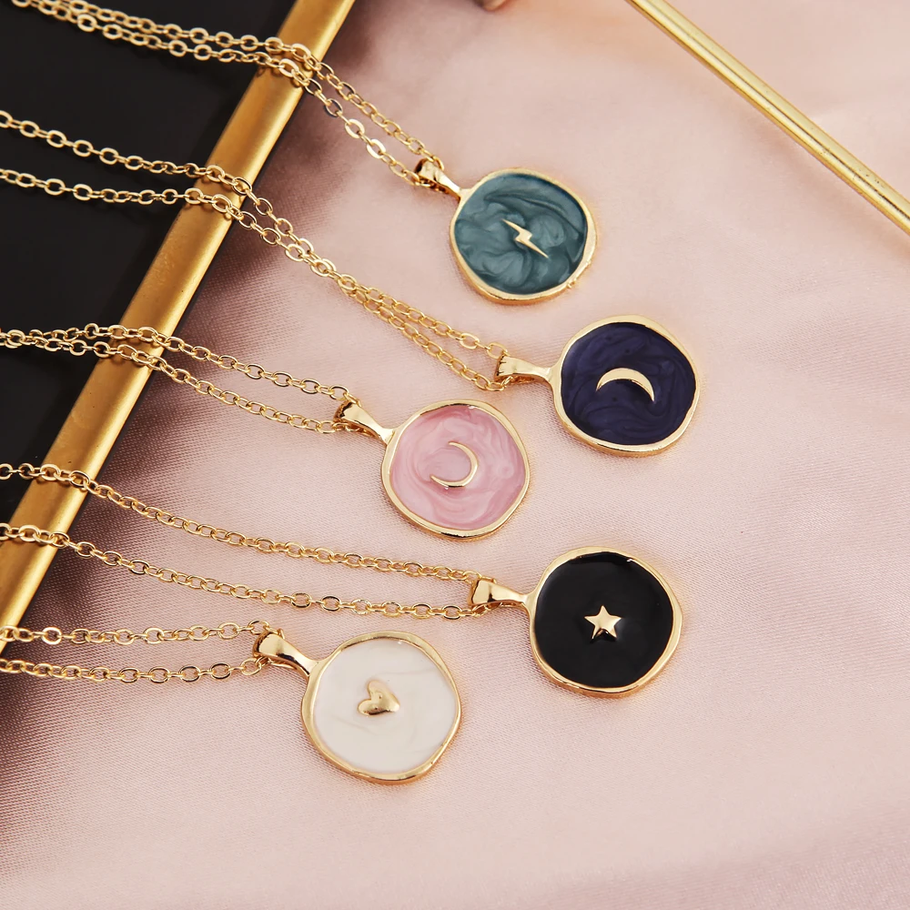 Подвеска с молнией с изображением цветной Луны и звезды для женщин и девушек, эмалированные модные ювелирные изделия для вечеринки на каждый день, модное ожерелье с цепочкой до ключиц