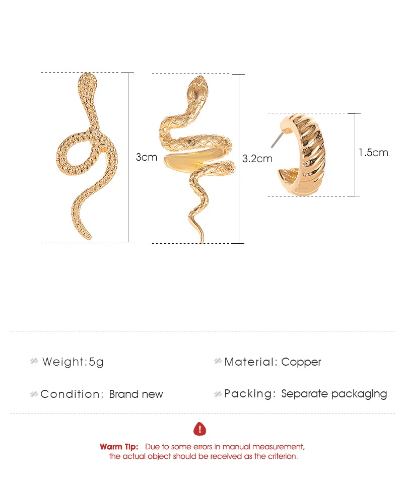 3 шт. ушей в форме змеи кости серьги-клипсы поддельные серьги, Наде...