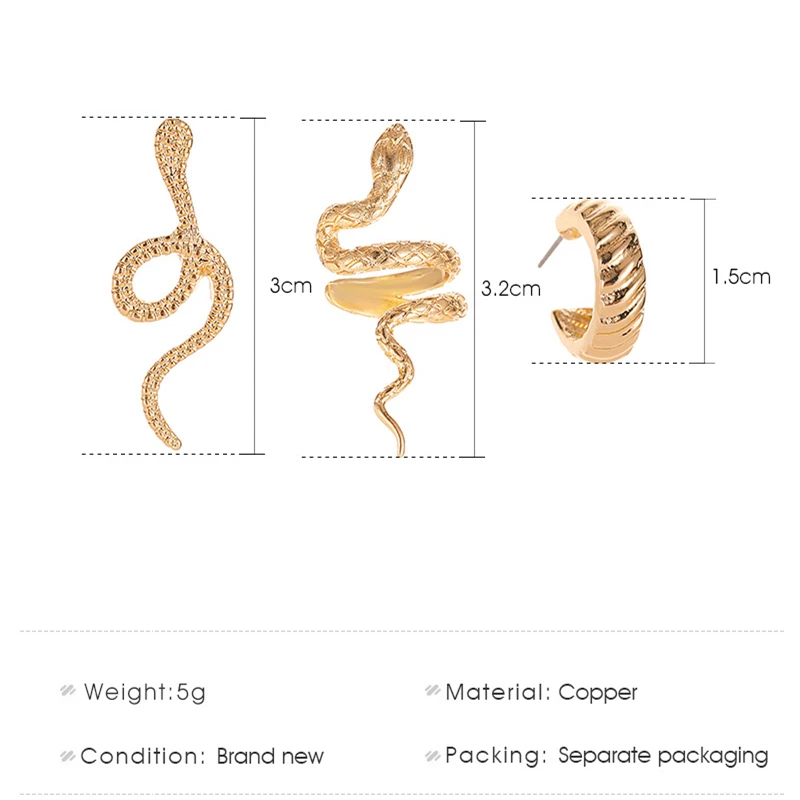 Серьги-Змеи в стиле ретро, крутой ветер, модный Комплект из трех пр...
