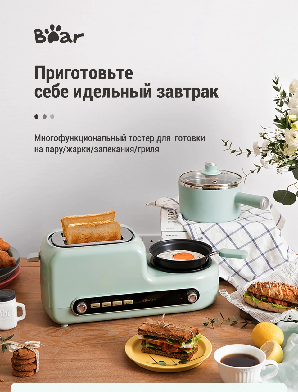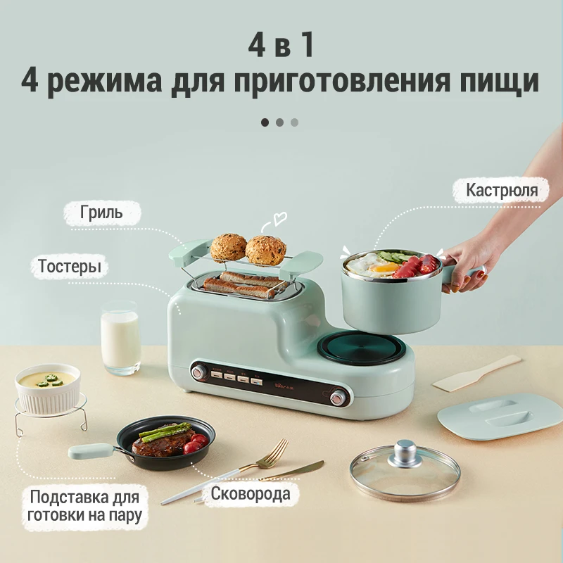 Bear Appliance сковорода кастрюля тостер для хлеба мультиварка 4 в 1 eggmaster все для дома для приготовления завтрака molnia