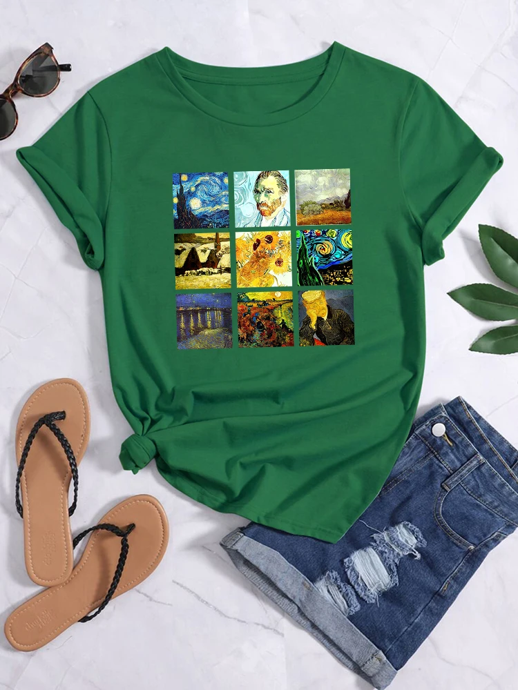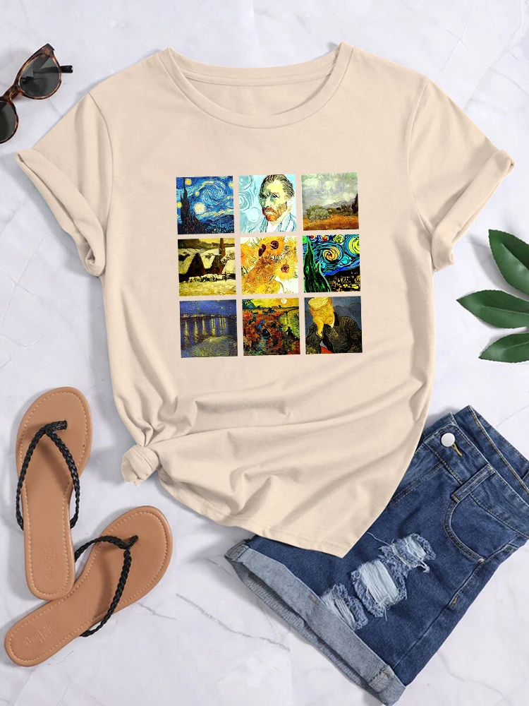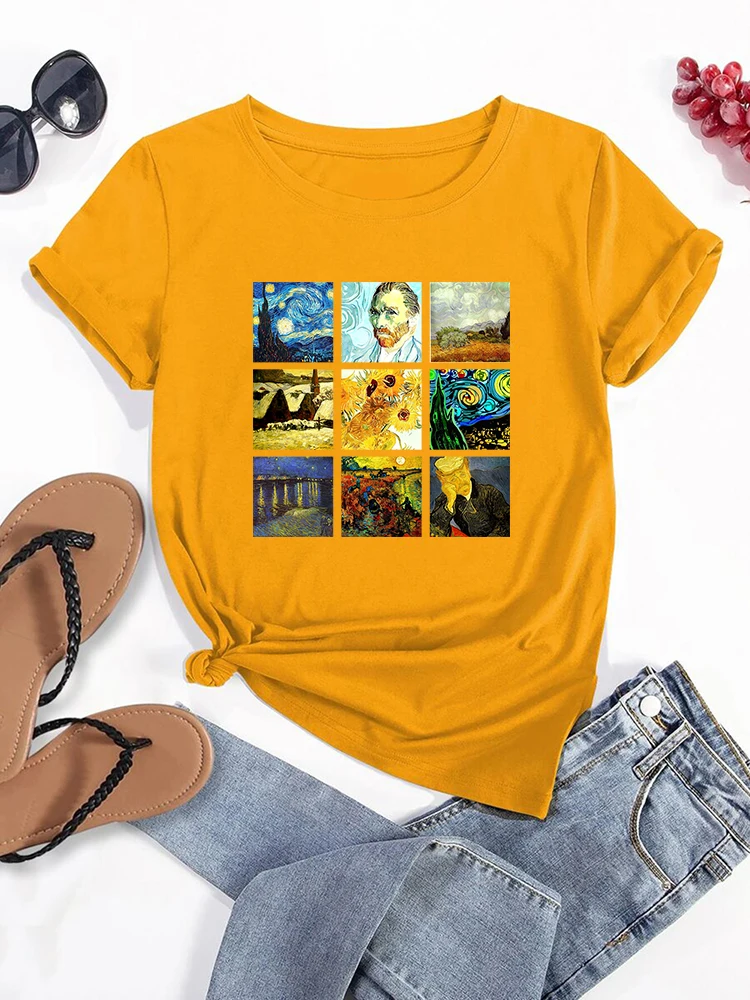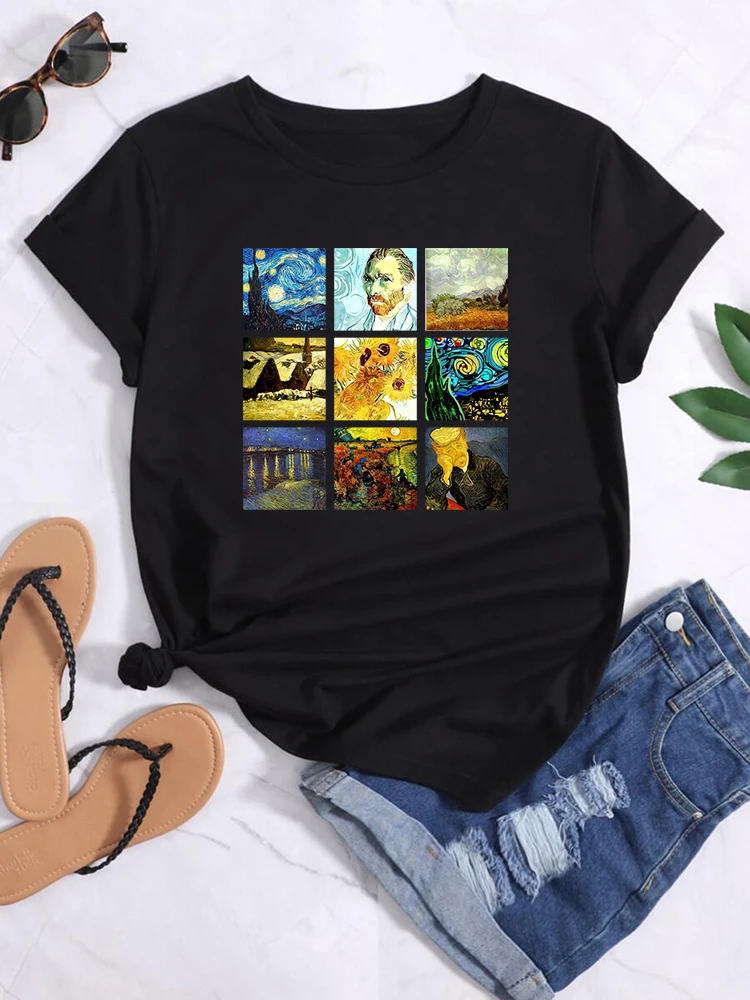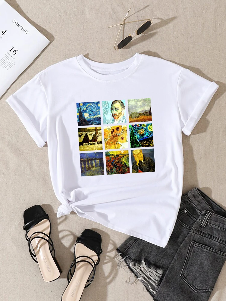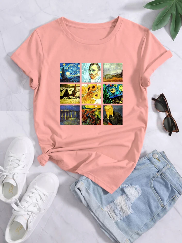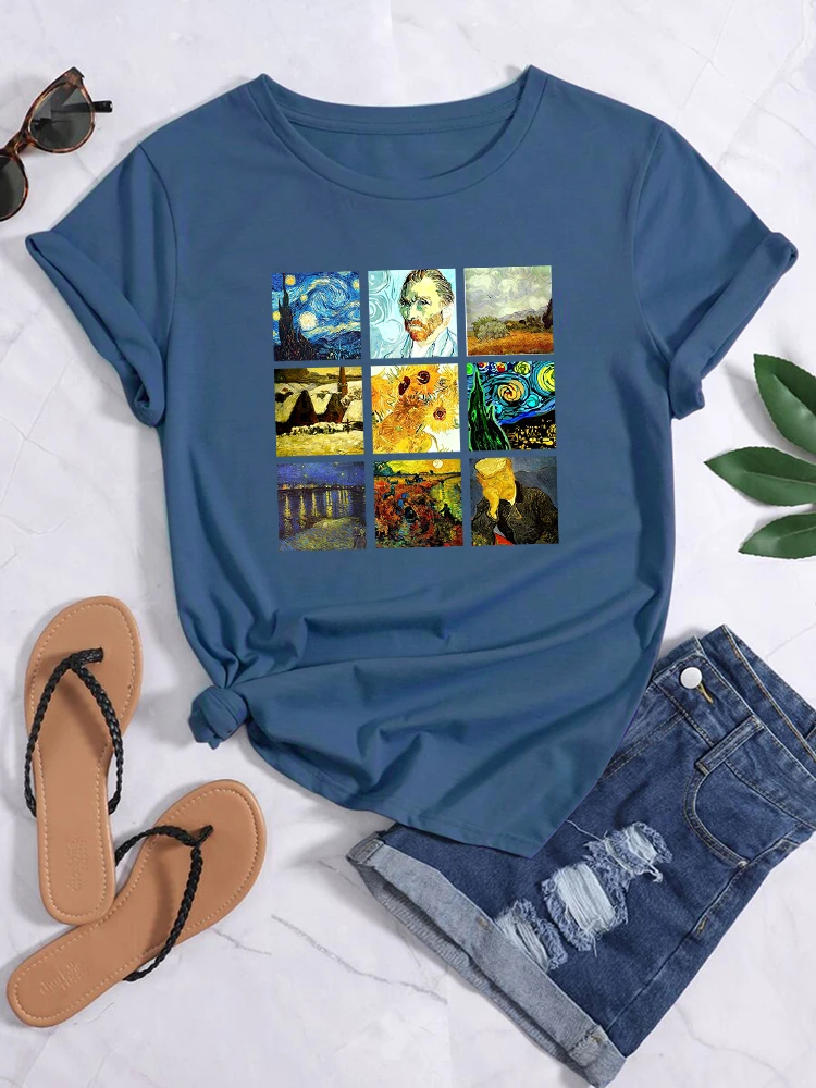 Футболка женская с масляным принтом, мягкая Свободная Повседневная ...