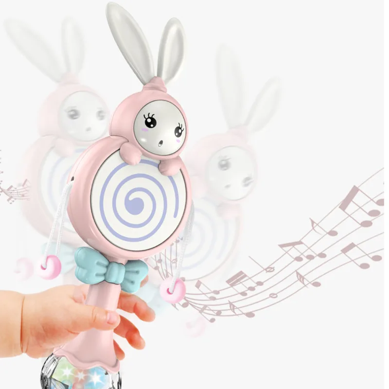 Мультяшный кролик, музыкальная мигающая детская игрушка, Прорезыватель для раннего развития, мобиль для детской кроватки, вокальные игрушки для новорожденных