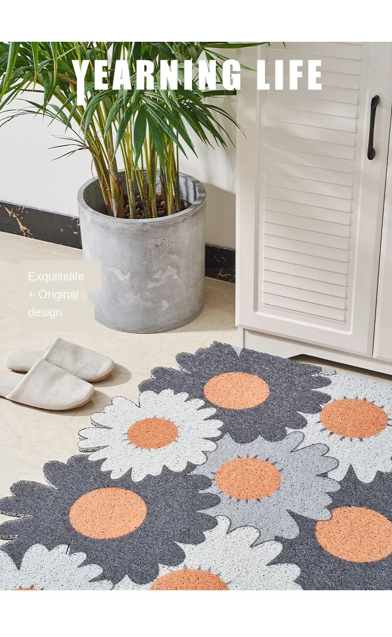 Придверный коврик с цветочным узором, нескользящий, можно разрезать, кухонный коврик из ПВХ, шелковая петля, индивидуальные коврики, коврики для входной двери