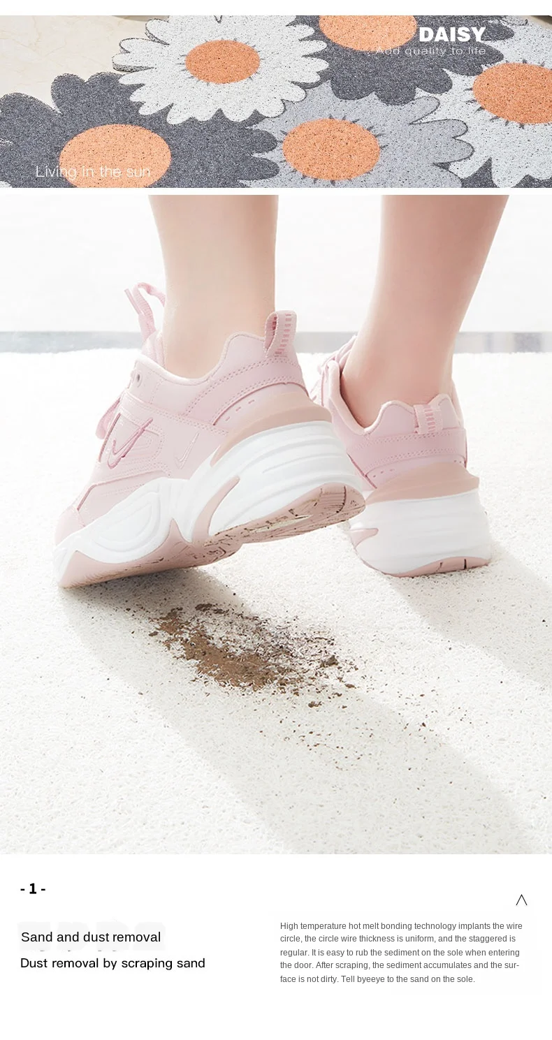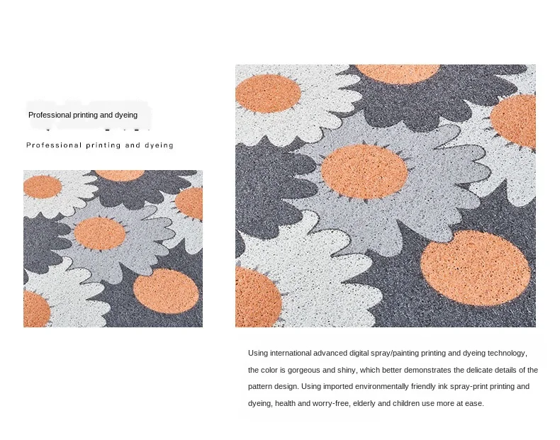 Коврик с шелковой петлей из ПВХ изготовлен из двух видов материалов, Шелковый материал на поверхности не только позволяет вам чувствовать себя комфортно на ногах, но также может впитывать пыль и предотвращать загрязнения.Перед тем, как войти в дверь, аккуратно соскребите обувь на коврике, и пыль и грязь на обуви упадет.Подошва из ПВХ не скользит, что может прилипать к полу, предотвращая движение коврика и защищая вашу безопасность.Эти два материала не наносят вреда человеческому телу, вы можете спокойно использовать коврик из ПВХ и шелковой петли в домашних условиях.