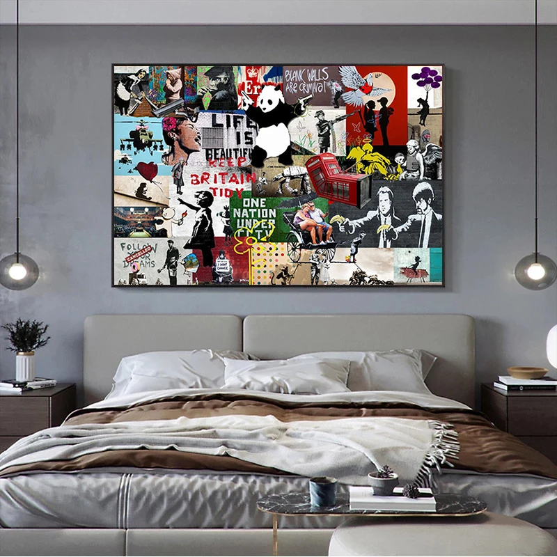 Граффити-коллаж Бэнкси, Картина на холсте, постеры и принты, настенные картины для гостиной, домашний декор