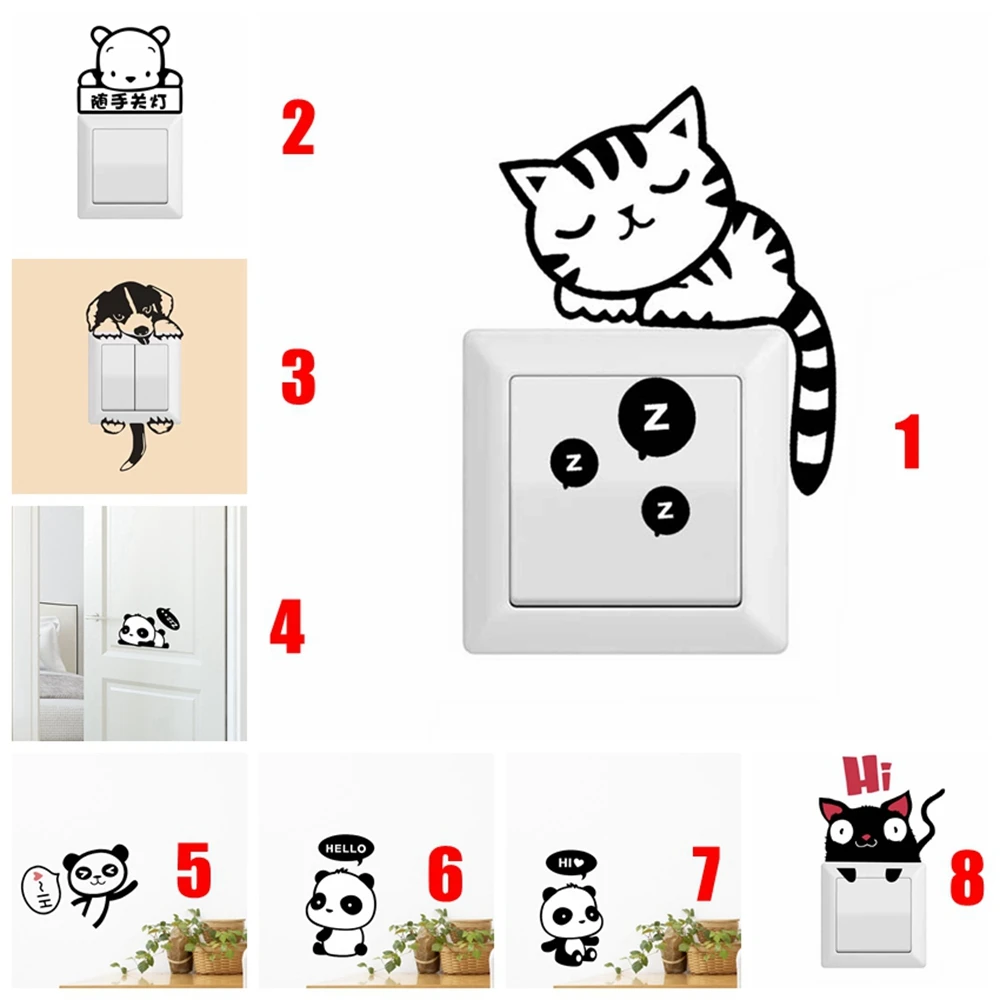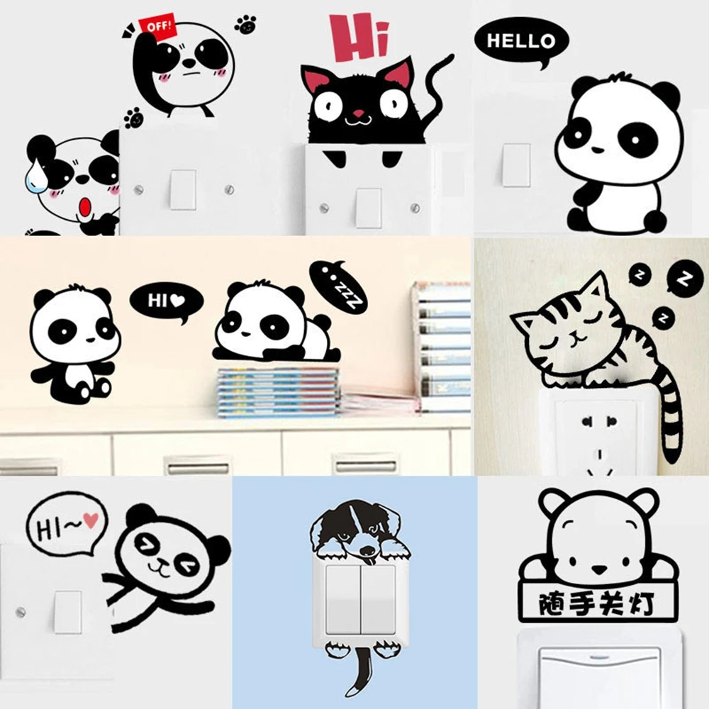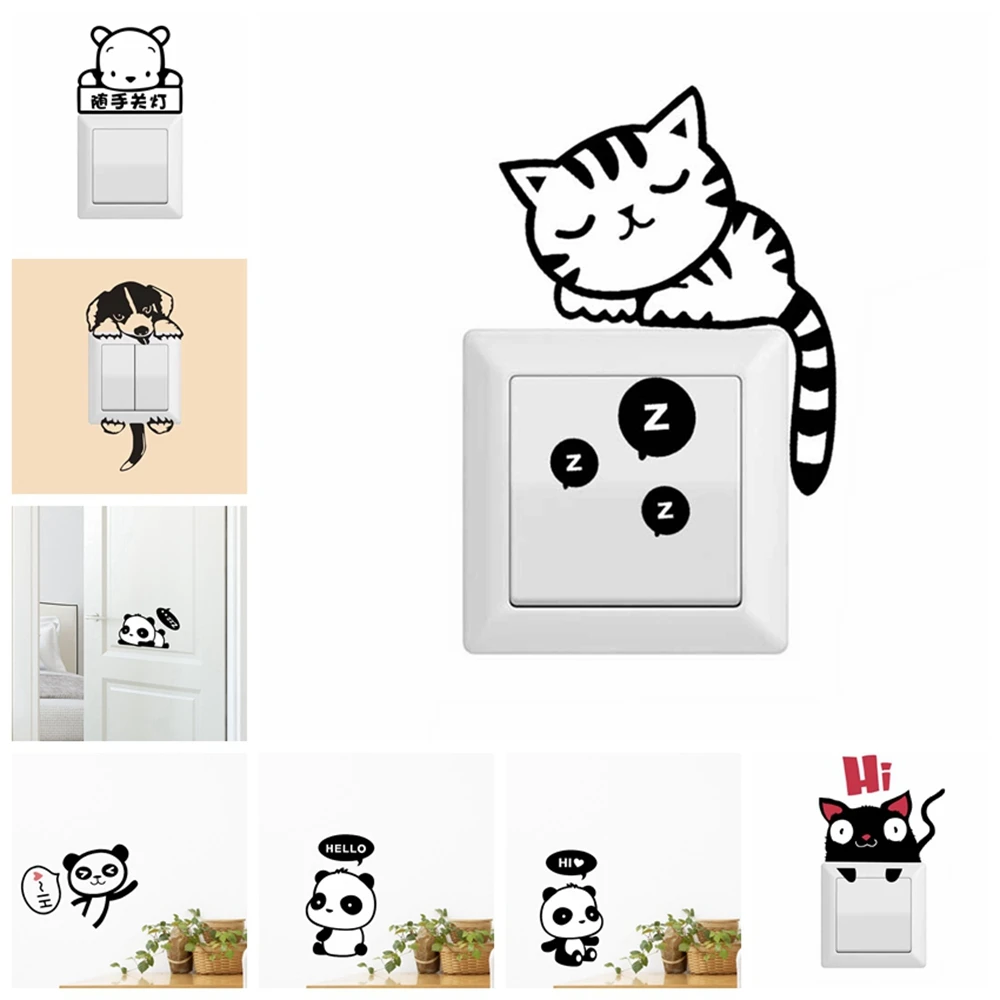 Наклейки на выключатель, наклейка на стену с котом, пандой, мультяшными животными, 3D наклейка на выключатель, Настенный Чехол для украшения комнаты