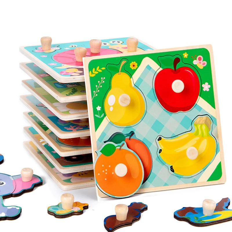 Монтессори игрушка деревянные массивные Пазлы мультяшный автомобиль животное блокирует обучение Развивающие игрушки 3D пазл для детей