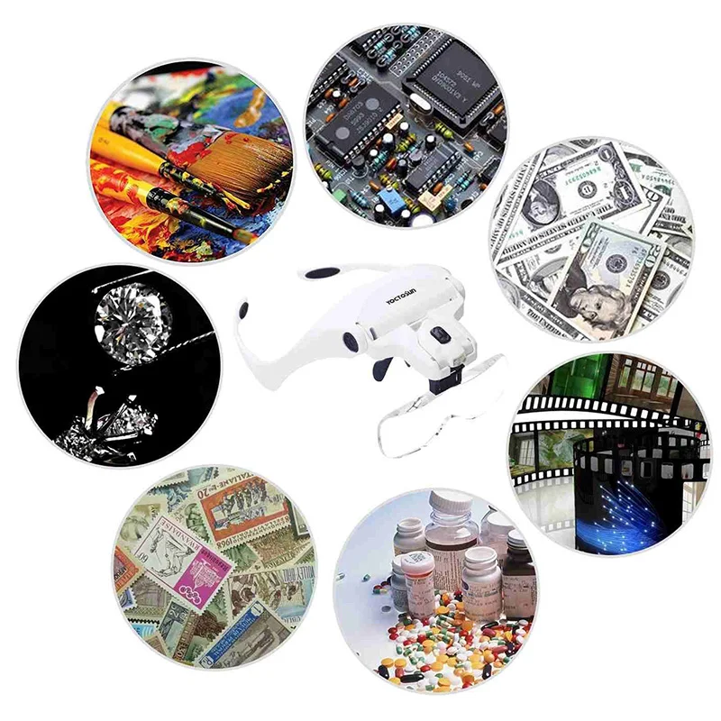 Увеличительное Стекло es светодиодный светильник фонаря ламповый патрон Лупа ювелира повязка лупы глаз Стекло es оптический Стекло инструмент для ремонта Чтение лупы