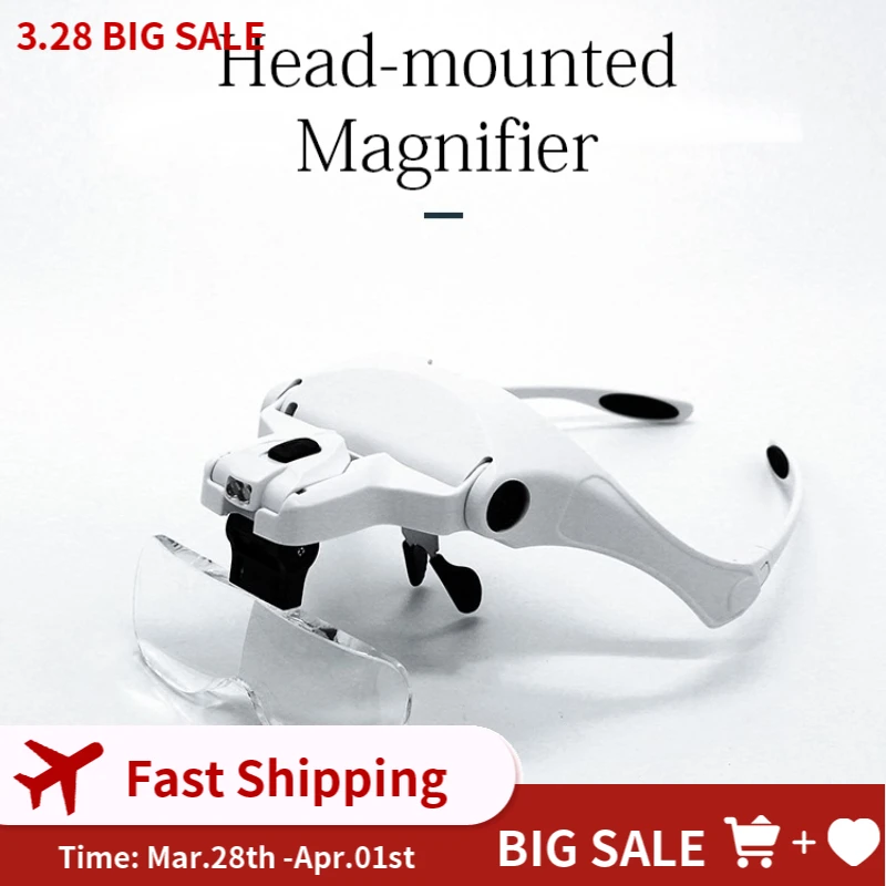 Горячая микроblading Кронштейн повязка очки лупа Лупа с 2 светодиодный свет очки увеличительный инструмент 5 линз 1.0X-3.5X регулируемый