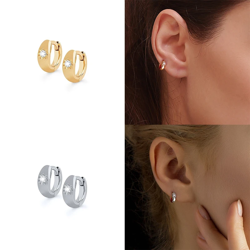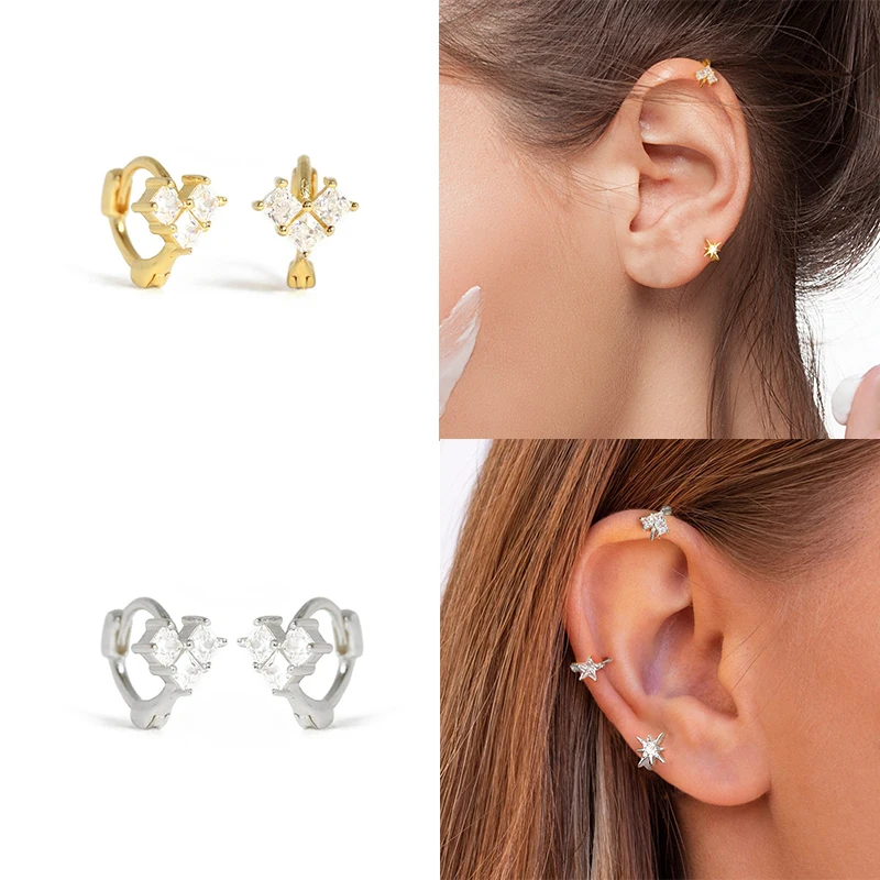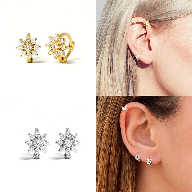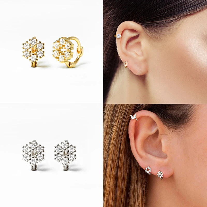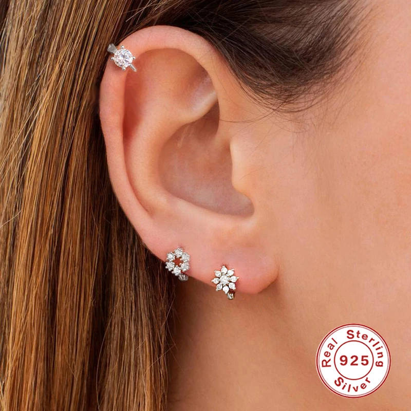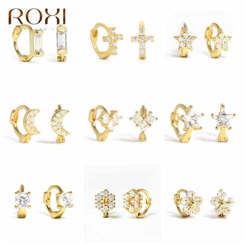 ROXI маленькие круглые серьги-кольца для женщин, Разноцветные серьги со звездами и цветами из циркония Huggie, 925 пробы серебряные серьги Plata 925