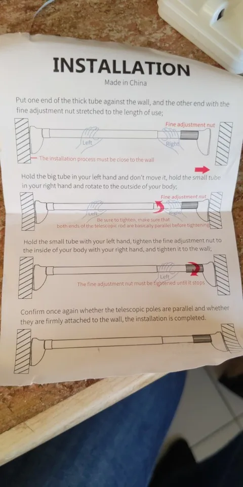 Удлинитель прост в выдвижении, вытягивании и скручивании, без инструментов, без сверления, без повреждений; Нескользящие резиновые головки в обоих концах стержня увеличивают трение, удобство для вашего использования.