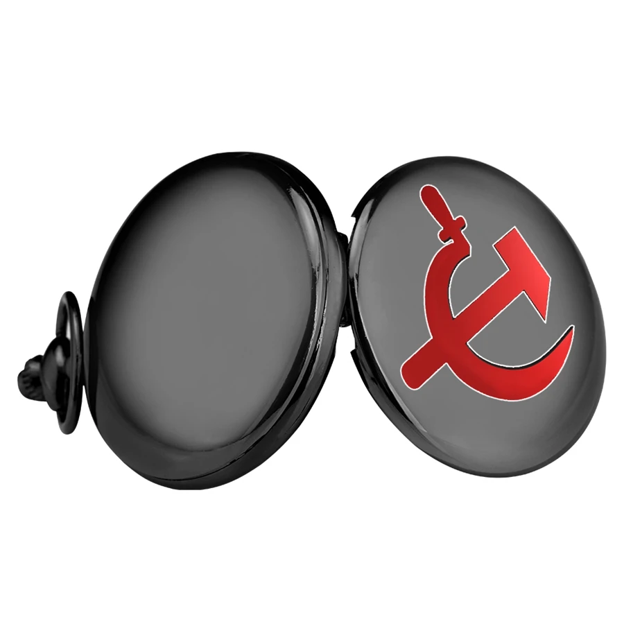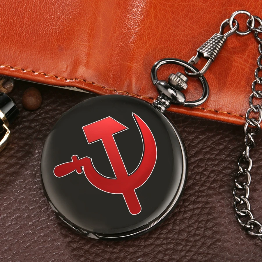 Карманные часы с серпом и молотом, красного цвета, в стиле СССР, на цепочке, с бронзовым циферблатом