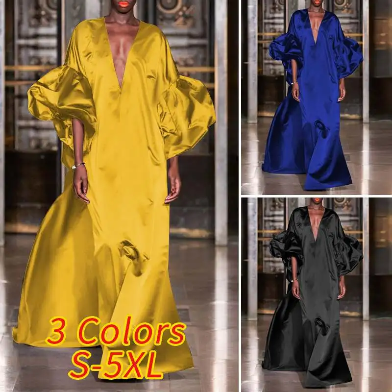 Летнее платье VONDA 2022, женские богемные вечерние платья с рукавами-фонариками, свободный однотонный сексуальный сарафан с V-образным вырезом, женские платья