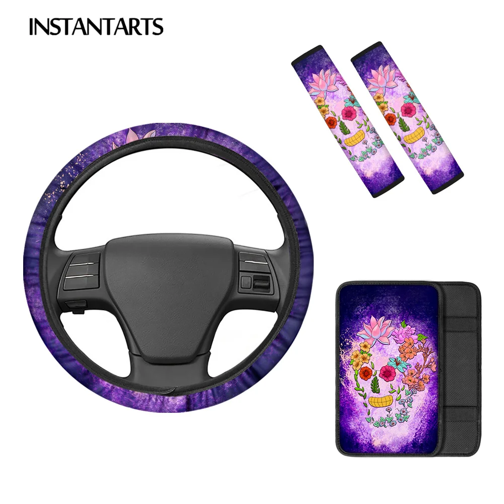 Комплекты мягких ремней безопасности INSTANTARTS, с изображением цветов, сахарных черепов, для центральной консоли, моющаяся защита руля, 2021