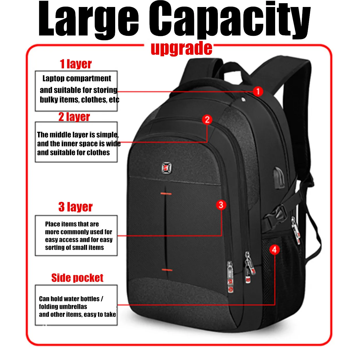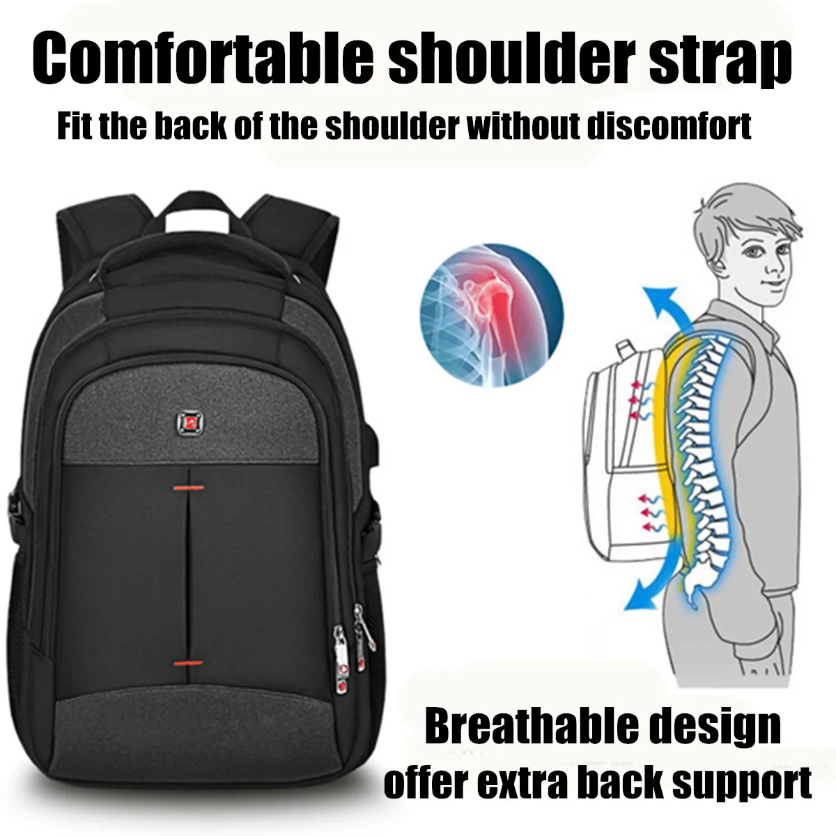 Особенности:-Изготовлен из материала ткани Оксфорд 1680D, прочный и износостойкий и водонепроницаемый.-Интерфейс USB для зарядки отлично подходит, чтобы наслаждаться удобной зарядкой, подключенной к портативному зарядному устройству для вашего электронного устройства, чтобы легко сохранить полную мощность в любое время. Обратите внимание, что этот рюкзак не включает питание только для легкого доступа к зарядке.-Он имеет 3 слоя отделение на молнии, 2 стороны сетчатых кармана и анти-кражи сзади, на молнии, с карманами. Подходит для ноутбука до 16 ", ноутбука, iPad, мобильного телефона, кошелька, книг, одежды, всех необходимых вещей на открытом воздухе.-Эргономичный дизайн: удобные дышащие плечевые ремни и задняя часть обеспечивают дополнительную поддержку спины.-Многофункциональность: идеально подходит для деловой поездки, отдыха на выходных или направления в офис, школу, дом.