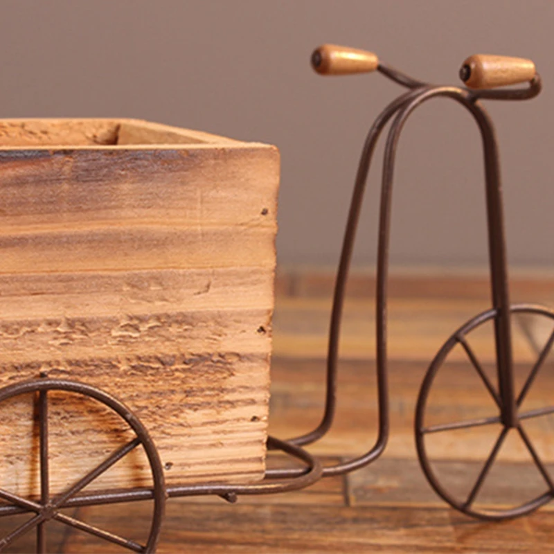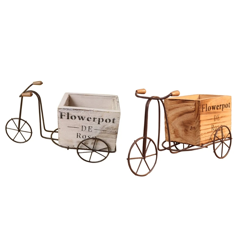 Пасторальная железная подставка для цветов на велосипед, подставка для комнатных качелей, трехколесный деревянный подставка для цветов, украшение для дома, рабочего стола и сада