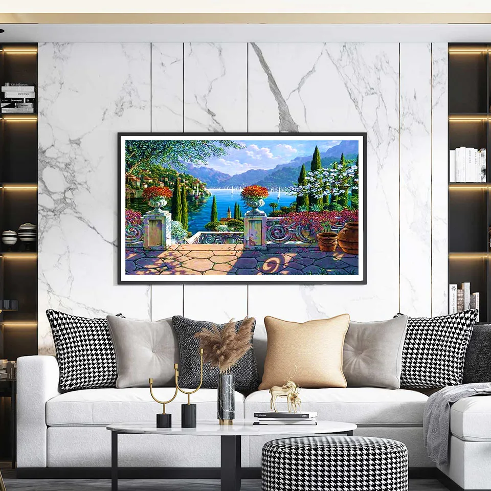 Алмазная картина 5D "сделай сам", квадратнаякруглая картина с изображением Приморского городского дома, вышивка крестиком, искусство, алмазная вышивка, украшение для дома, подарок