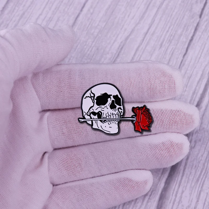 Эмалированная булавка с изображением красной розы и черепа, романтические цветы, брошь с дизайном скелет, значок Хэллоуина