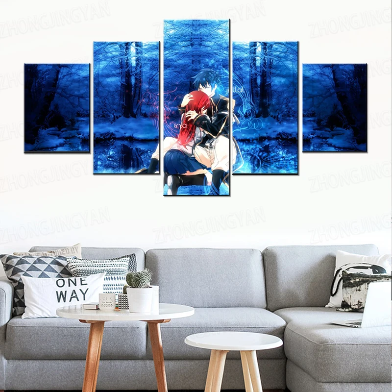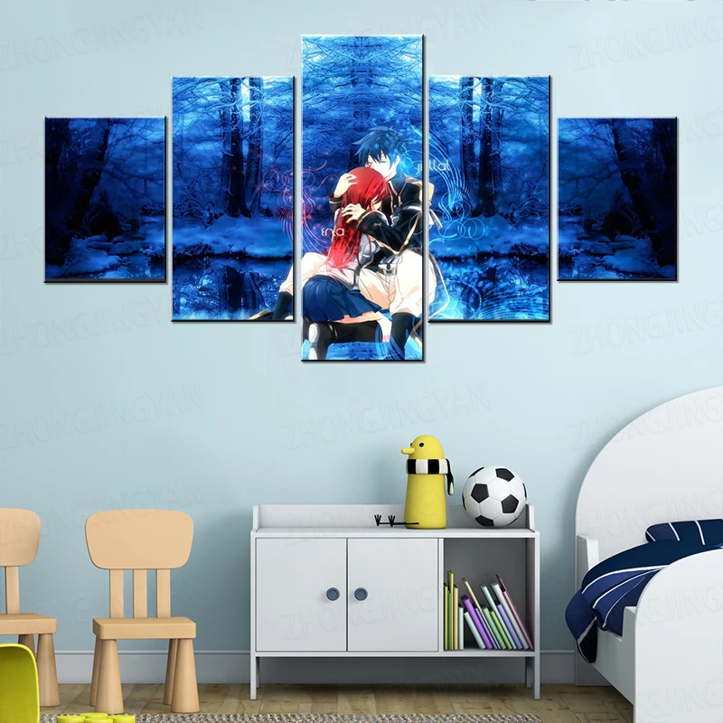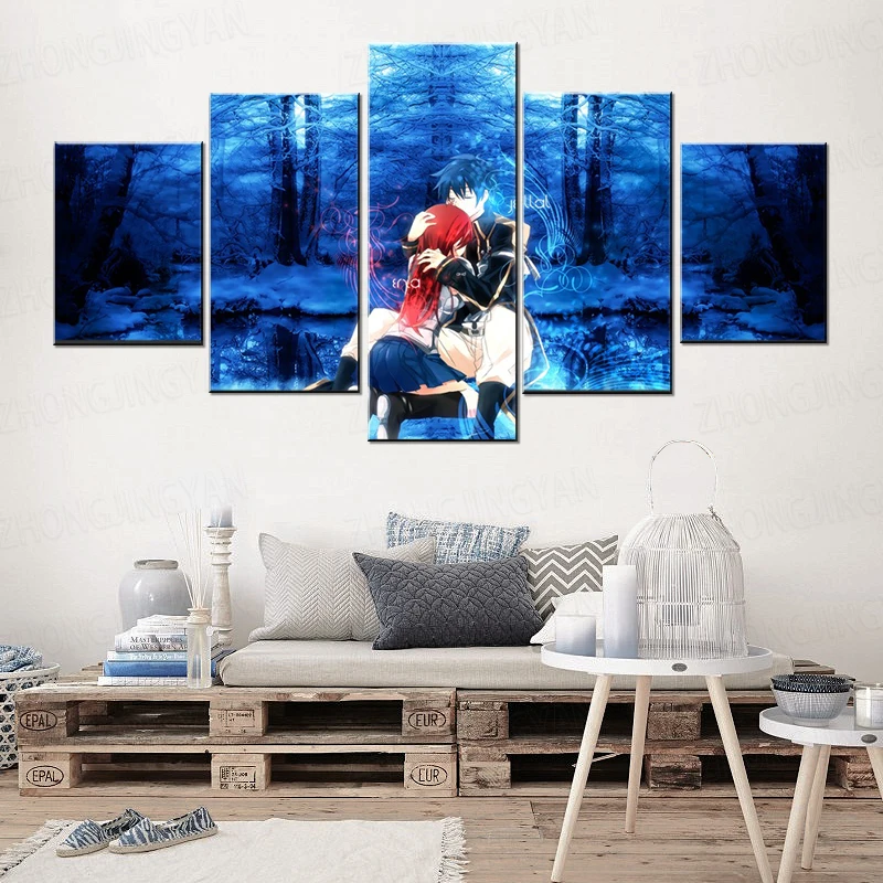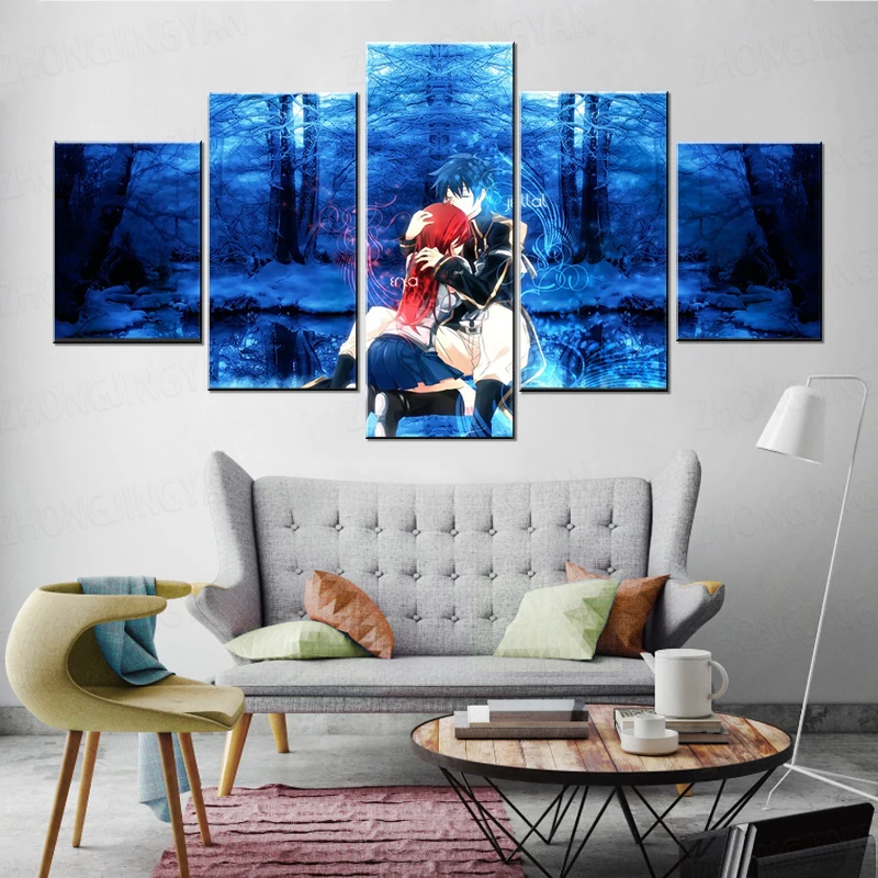Настенное искусство модульная рамка холст печать 5 штук Erza Scarlet аниме Фея хвост Jellal Фернандес фотообои для спальни