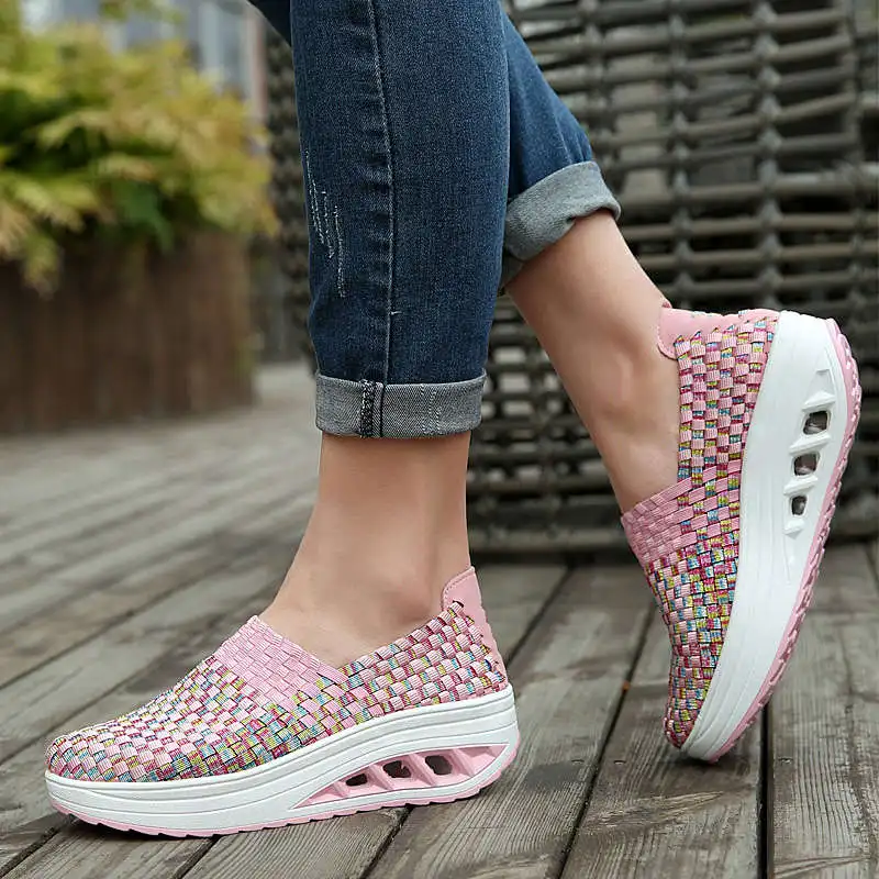 Кроссовки на танкетке женские, легкие спортивные беговые туфли, пло...