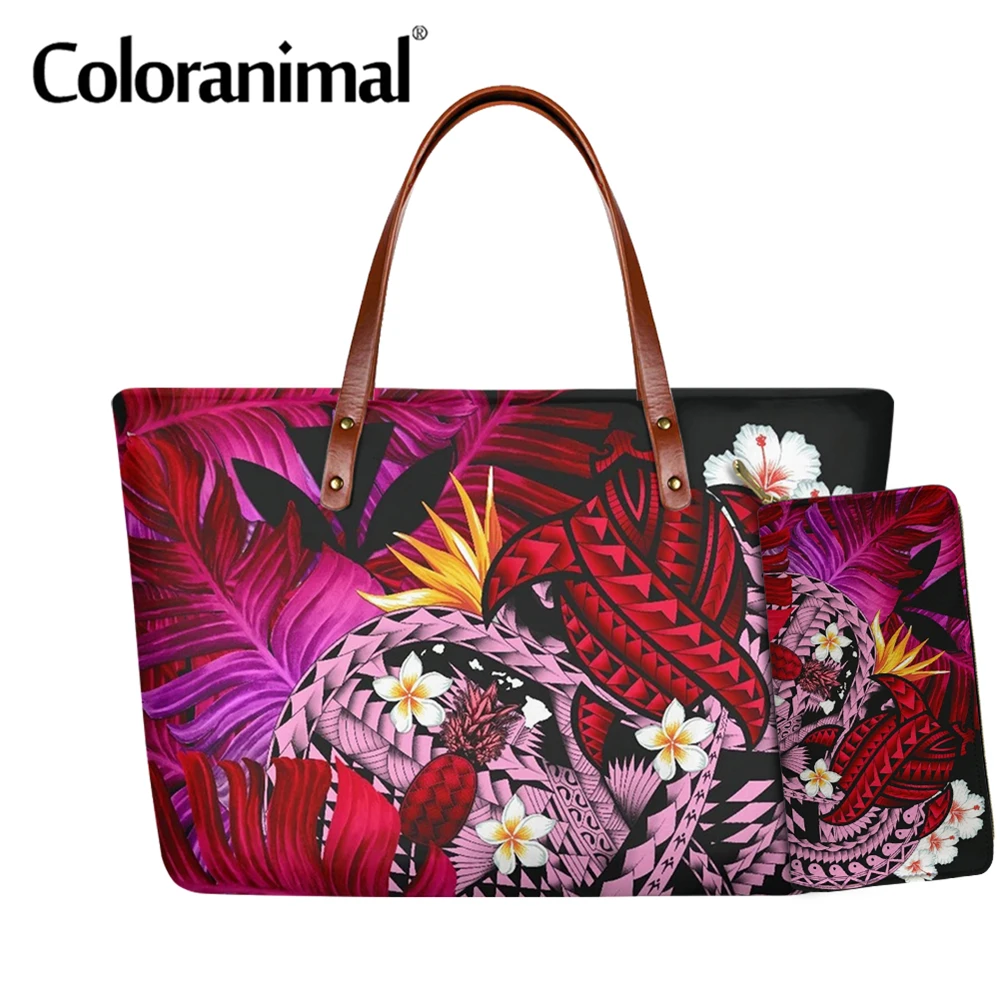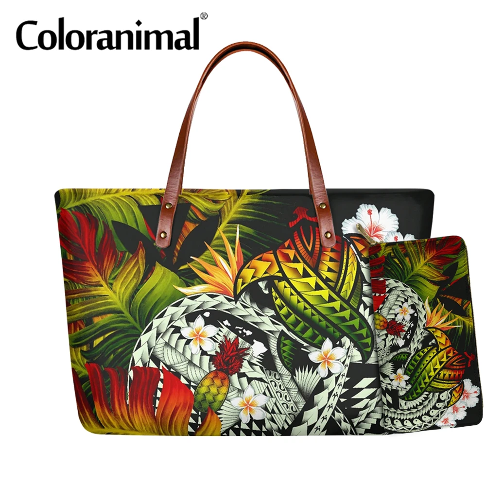 Цветные животные Гавайская Полинезия ананас, банан с принтом листьев черепахи, женская сумка через плечо из ПУ кожи, сумка для хранения, 2 шт. Bolsa