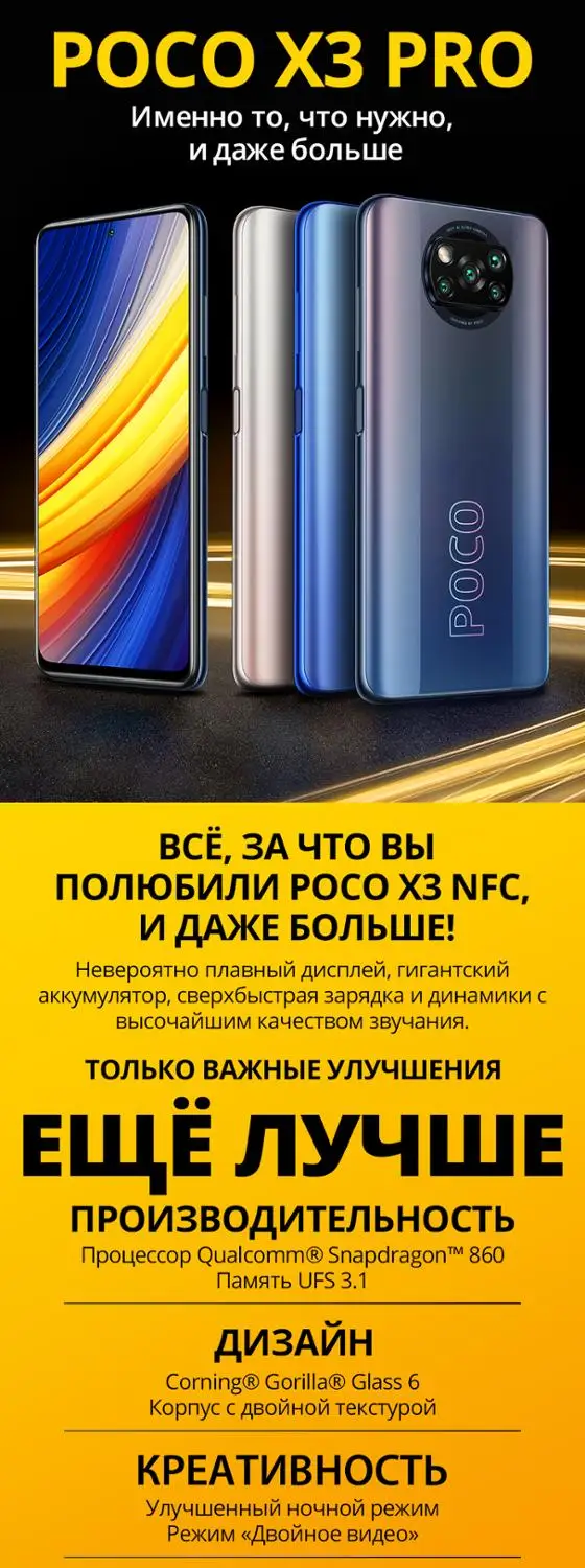 СЮРПРИЗ ПО ПРОМОКОДУ,Смартфон POCO X3 Pro RU 8+256ГБ РОСТЕСТ, официальная гарантия, доставка от 2 дней