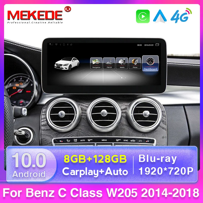 Автомобильный мультимедийный плеер на Android 10, 8 ГБ + 128 Гб, навигация GPS для Mercedes Benz C Class W205 2014-2018 NTG5.0 WIFI Carplay AUTO