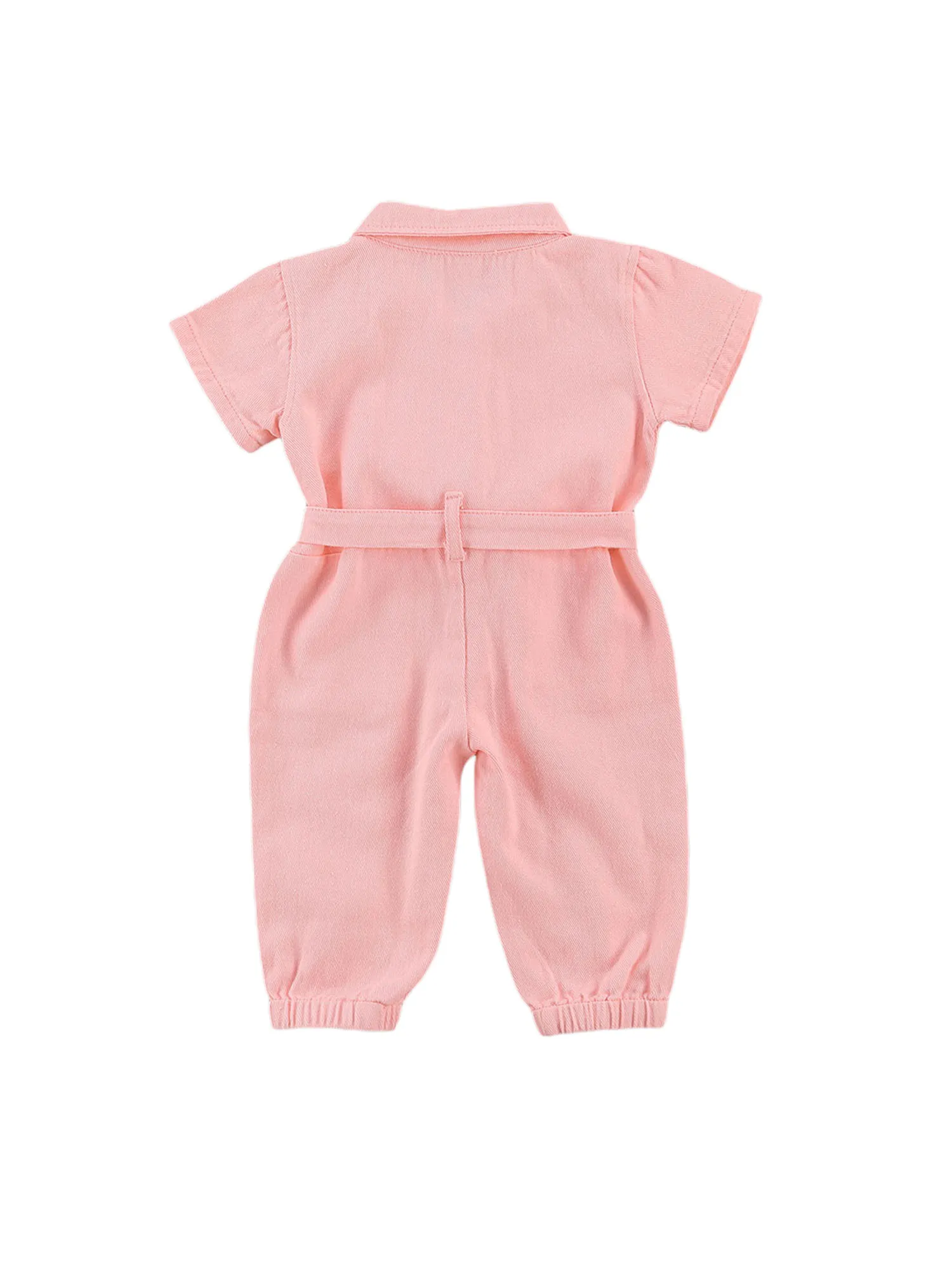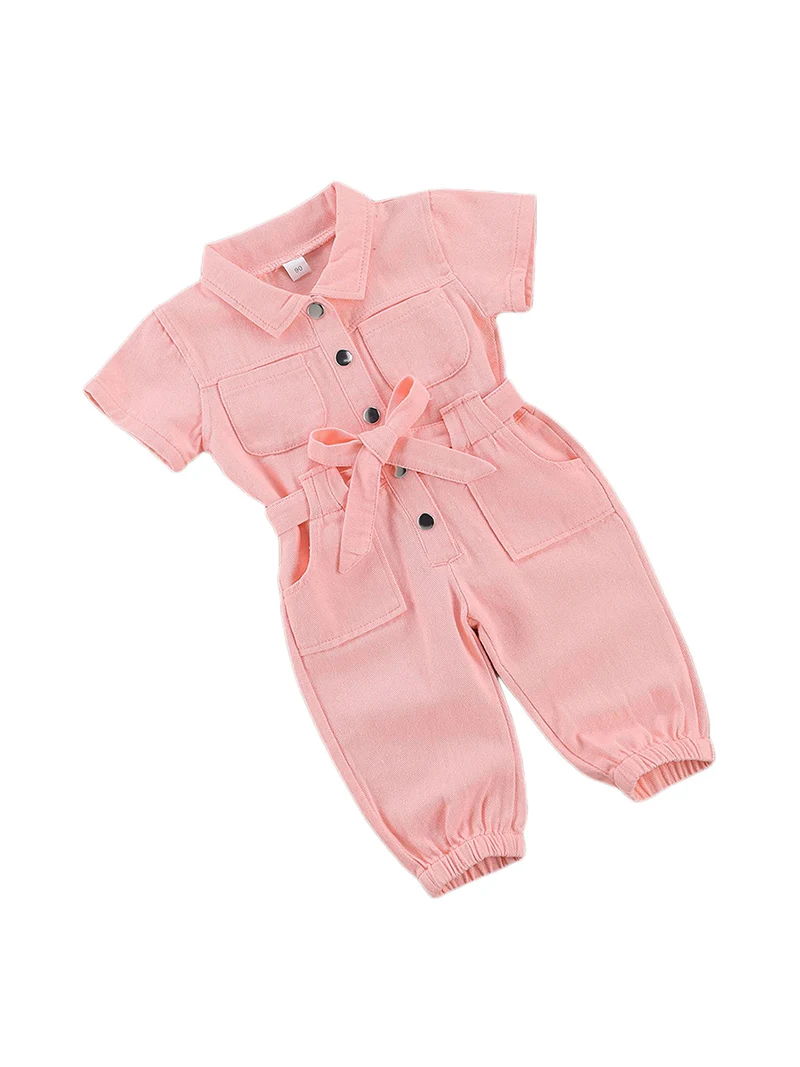 Комбинезон для маленьких девочек; Рабочая одежда с воротником-стойкой и карманами; Комбинезоны с короткими рукавами для детей; Одежда для новорожденных девочек; Цельнокроеная одежда