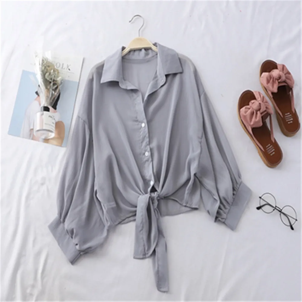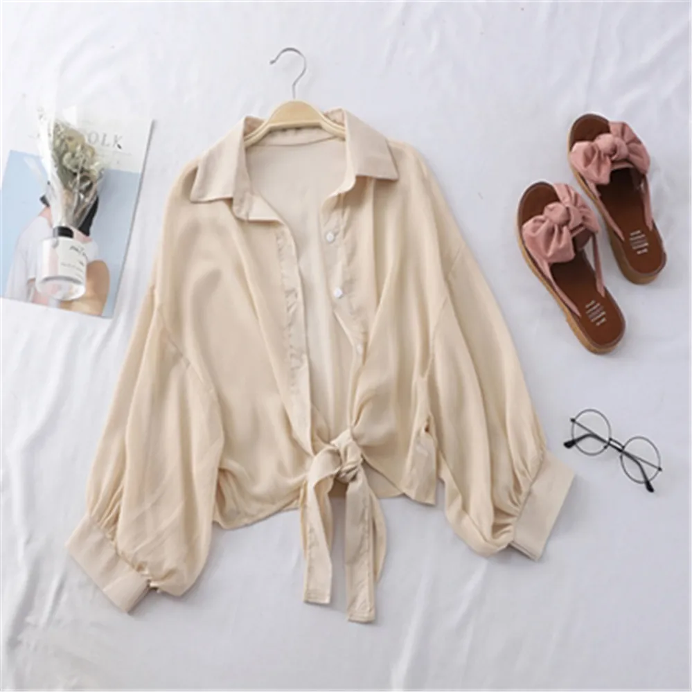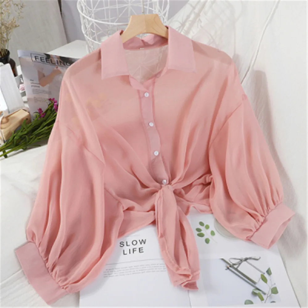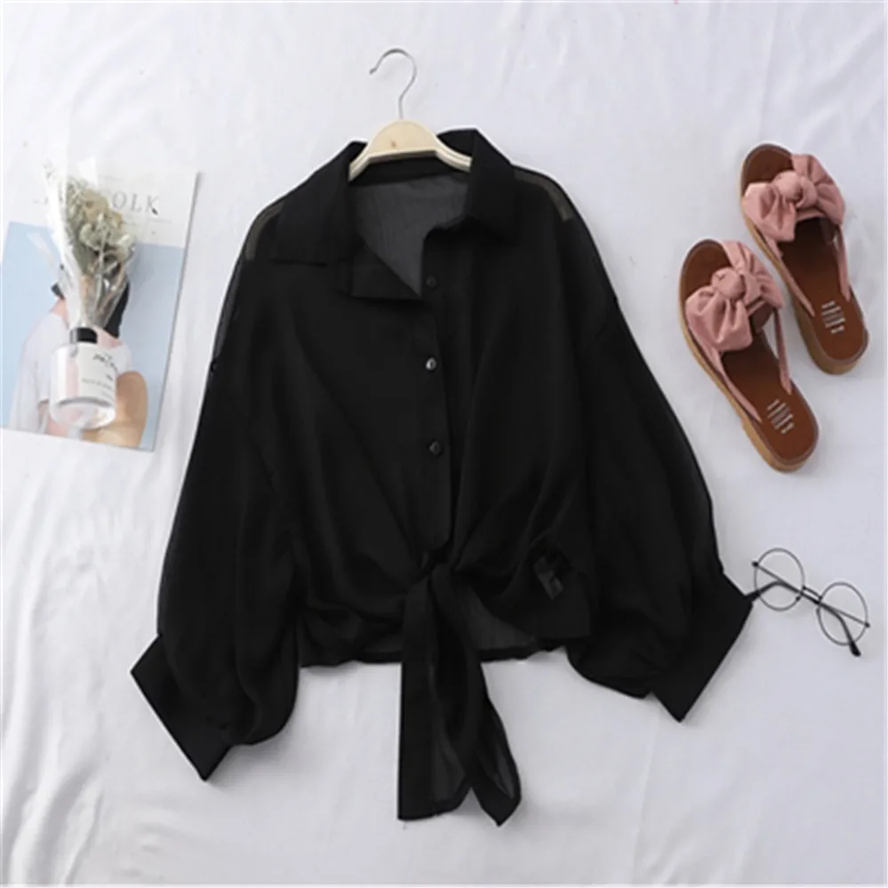 Популярная тонкая Солнцезащитная рубашка, женские рубашки шифоновые...